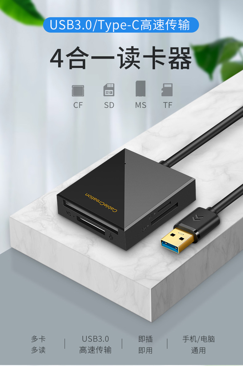 - USB3.0 чтение карты 4-в-1 Читает (0,5 метра-чернокожих применимого SD/TF/MS/CF Card)