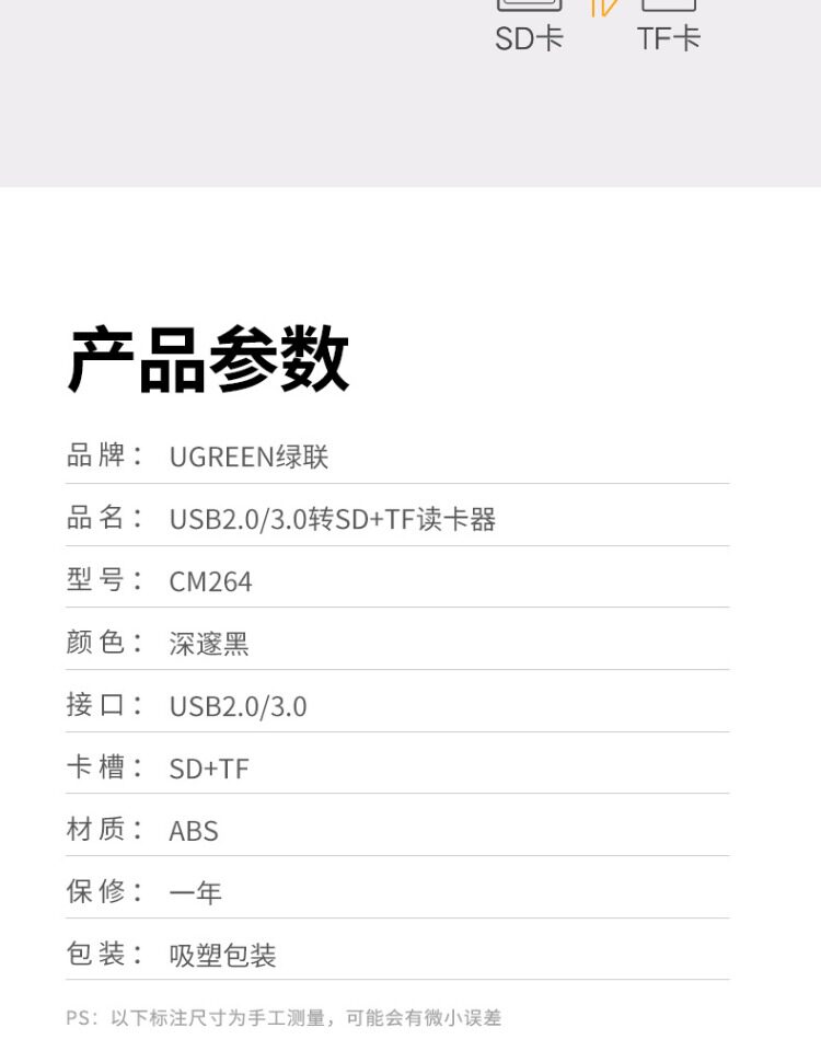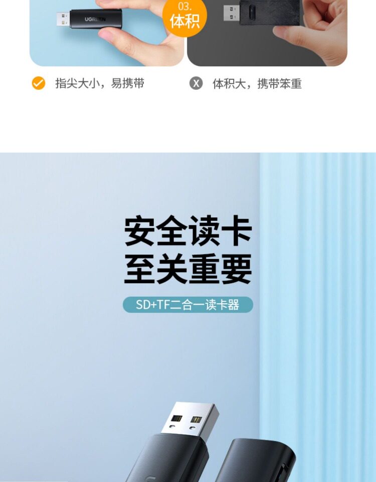 Ugreen Green Coupling Card Reader SD Card TF Multi -функциональная комбинация USB3.0 Mini High -Speed Convertioner Tranc
