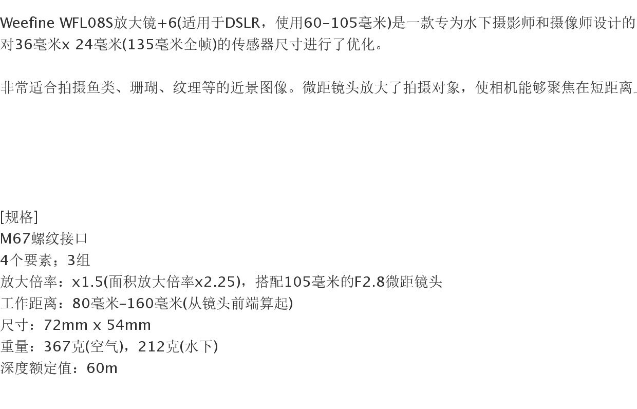 | Цвет: | WFL03 1.8X +12, WFL05S 2.5X +13, WFL06S APO 4.2X +23, WFL08S 1.5X +6, WFL13 3X +18, WFA58 WFL03/WFL05S применимо, Быстросъемное магнитное кольцо объектива WFA58-L подходит для WFL03/WFL05S., WFA58-H водонепроницаемый корпус, быстросъемное магнитное кольцо, подходит WFL03/WFL05S |