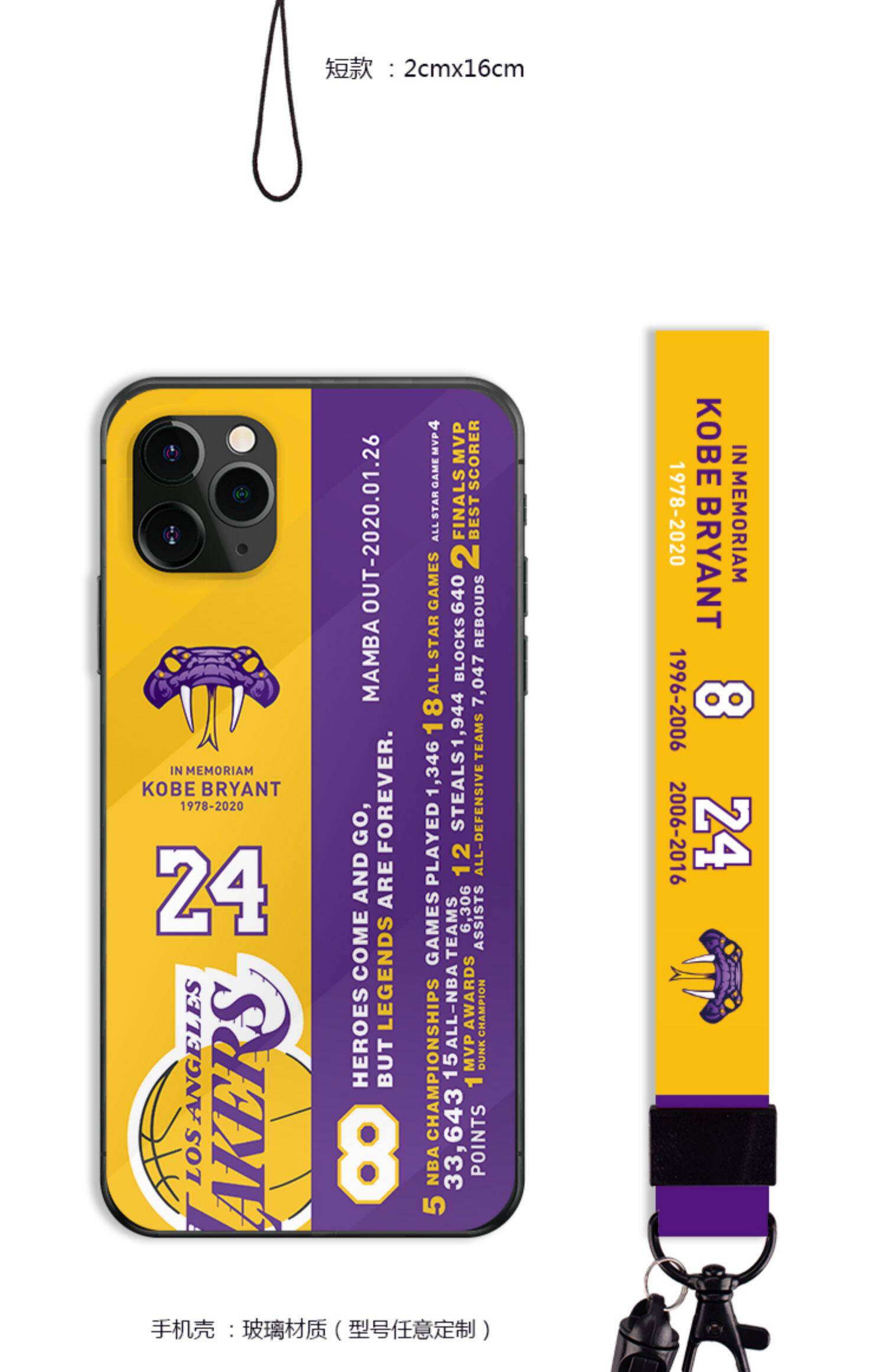 NBA Los Angeles Lakers Team Cobe Kobe's Death's Limited Memborative Black Mamba Mobile Phone Shell Cracket Cracket Cracket