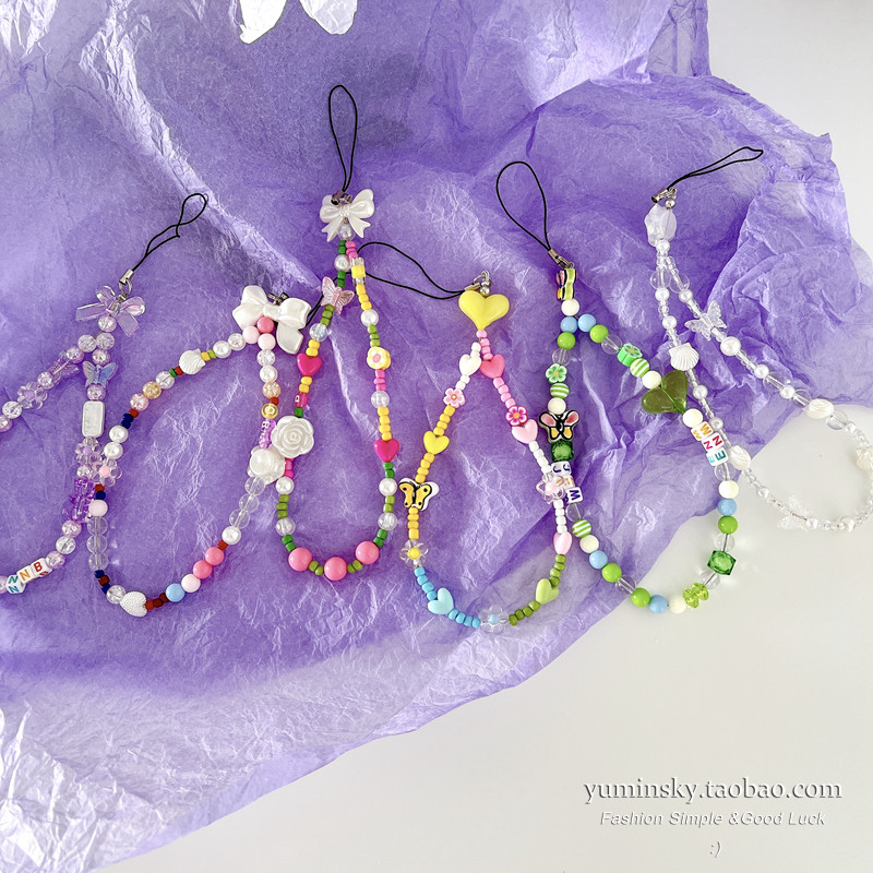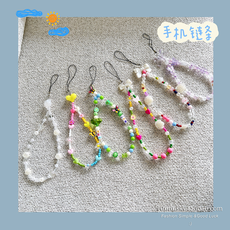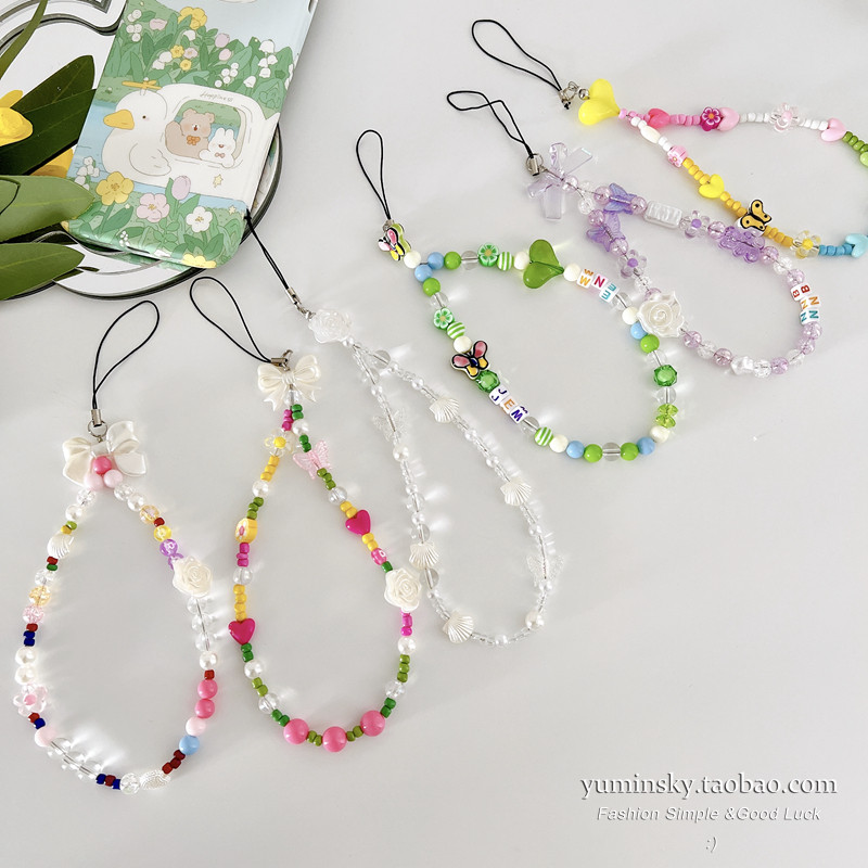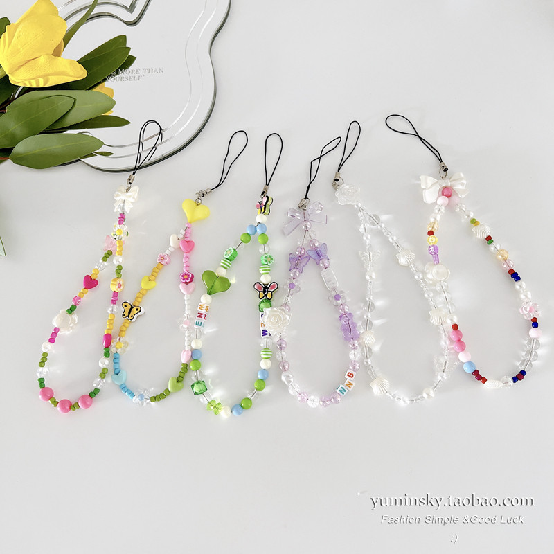 Apple, huawei, милый совместимый мобильный телефон, браслет из бисера, короткий ремешок, в цветочек