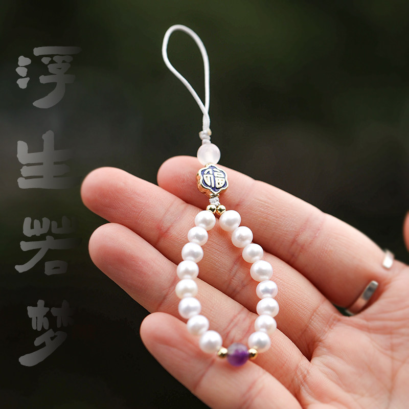 Ретро натуральный мобильный телефон из жемчуга, короткий ремешок, USB-флеш-накопитель, подвеска, защитное плетеное кольцо для ключей