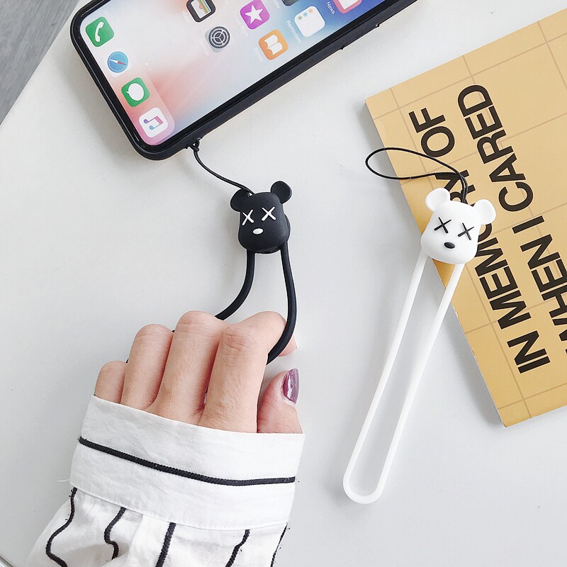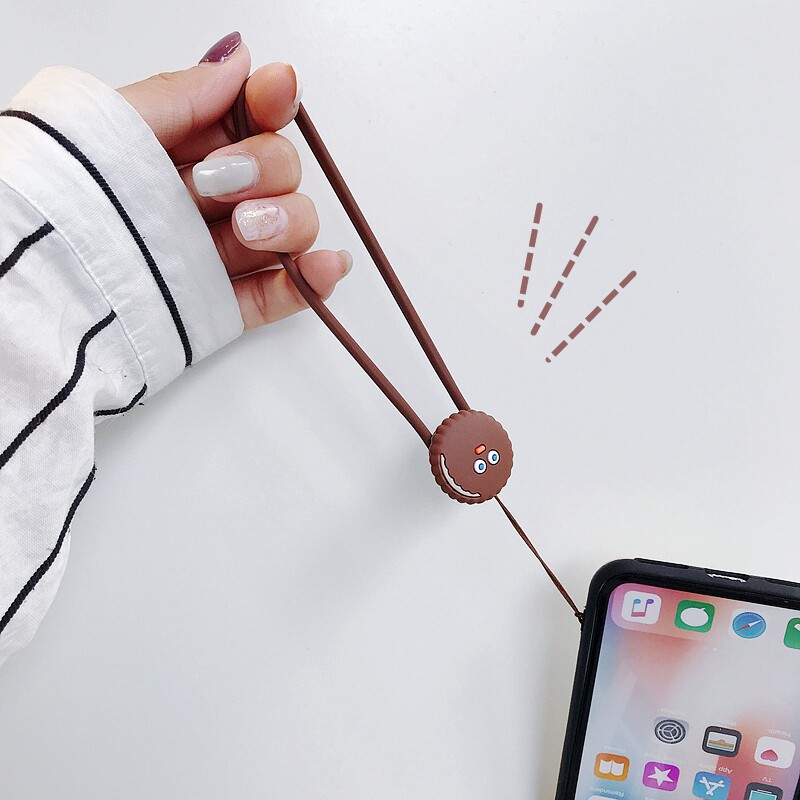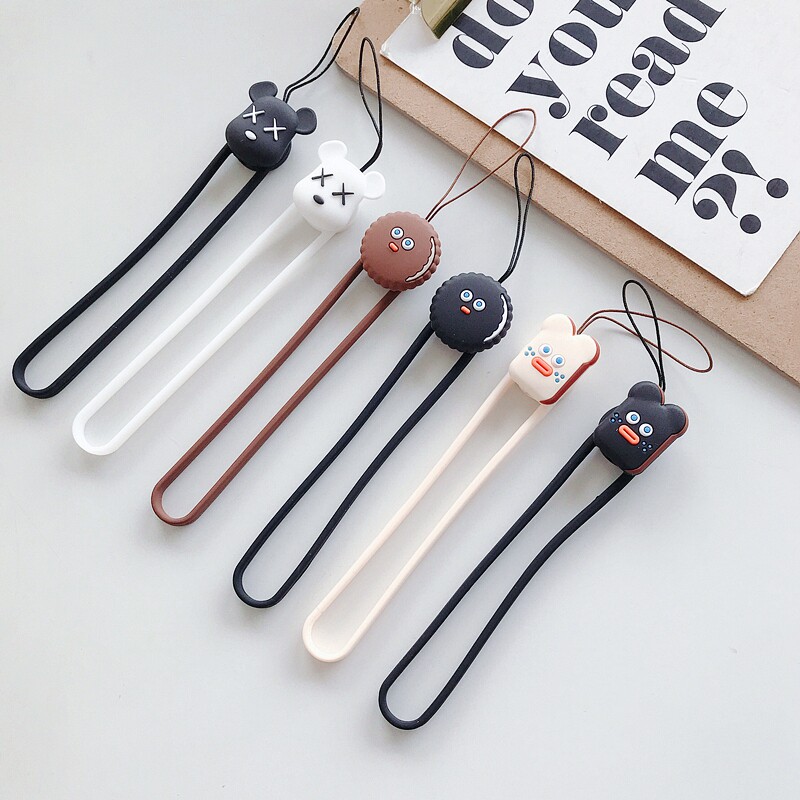 Apple, мультяшный милый мобильный телефон, короткий ремешок, цепочка для ключей с застежкой, силиконовый чехол для телефона, съемное кольцо