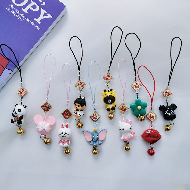 Креативная кукла для ключей, подвеска с застежкой, мобильный телефон, ремешок, колокольчик, сумка, аксессуар, на удачу