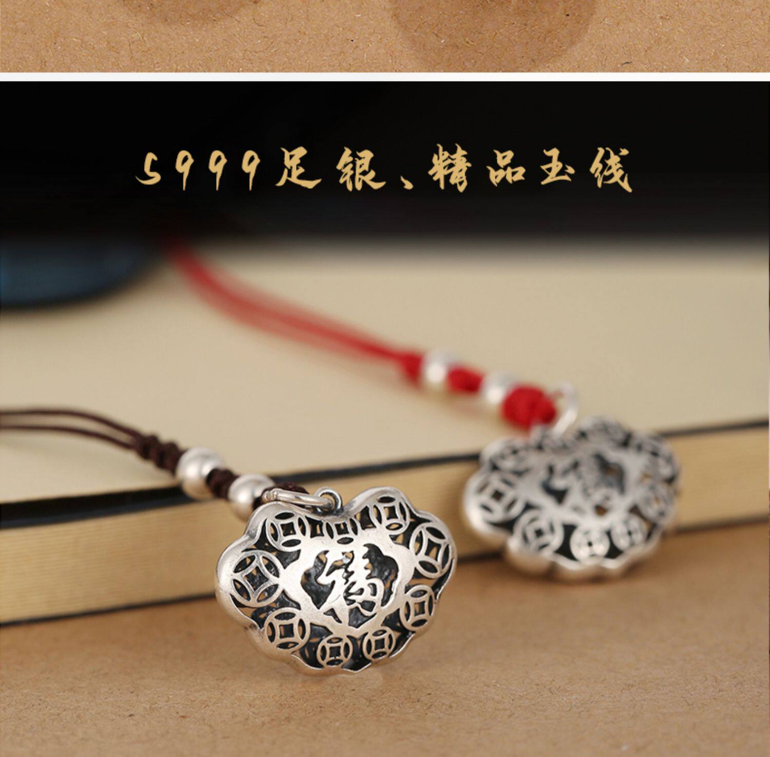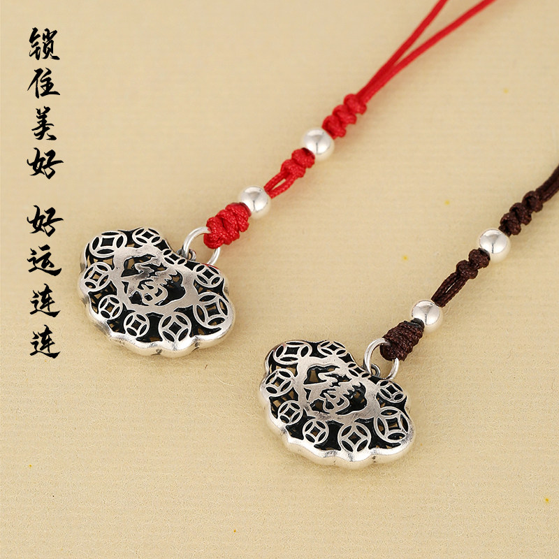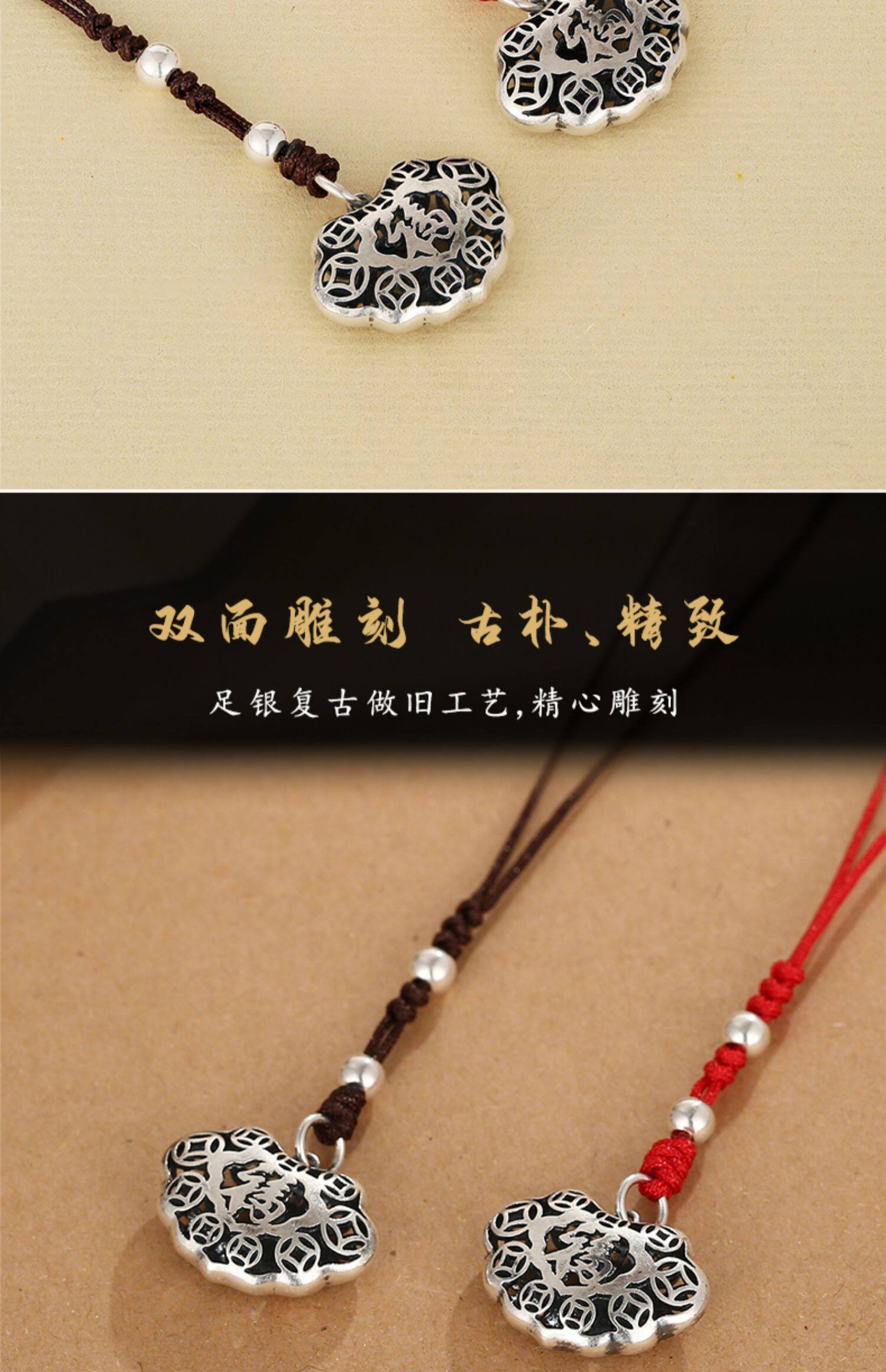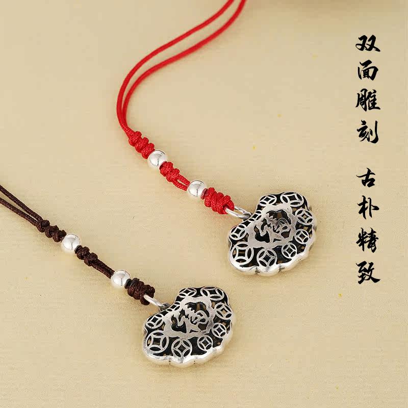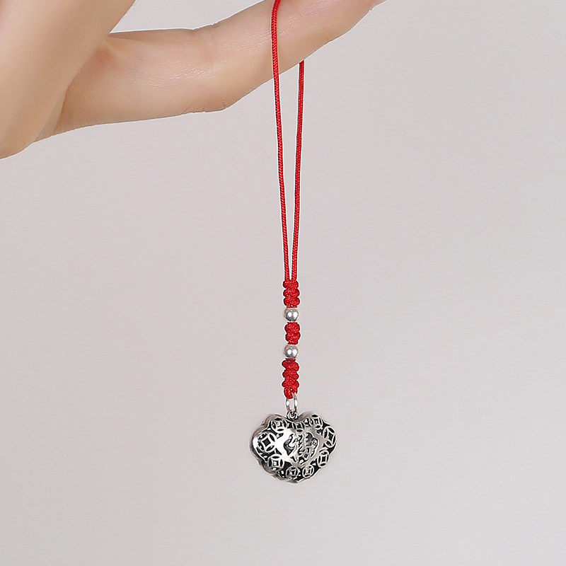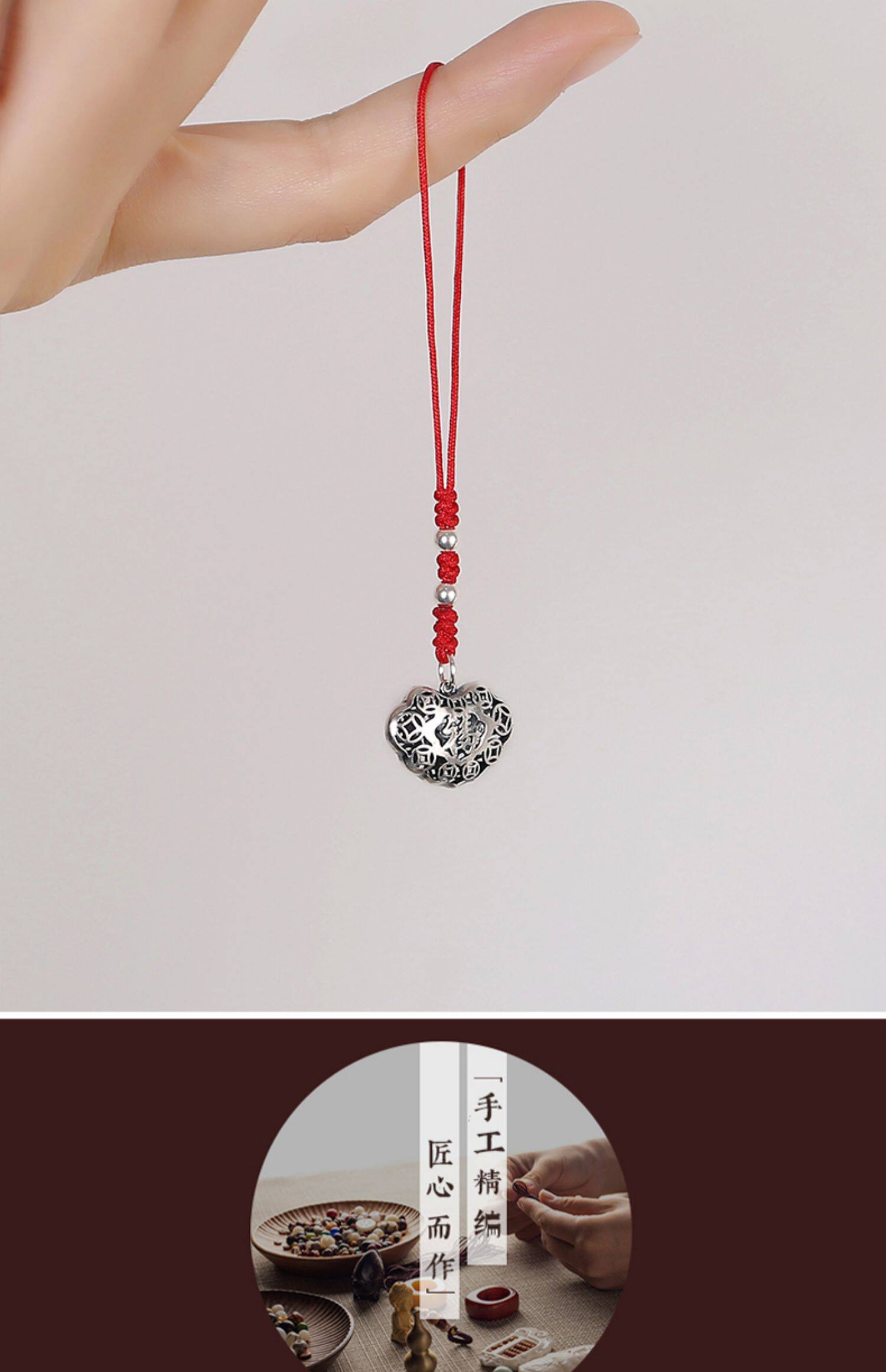 Высококлассная сумка, ретро двусторонний ремешок, резной маленький изысканный браслет из красной нити, подвеска, серебро 925 пробы