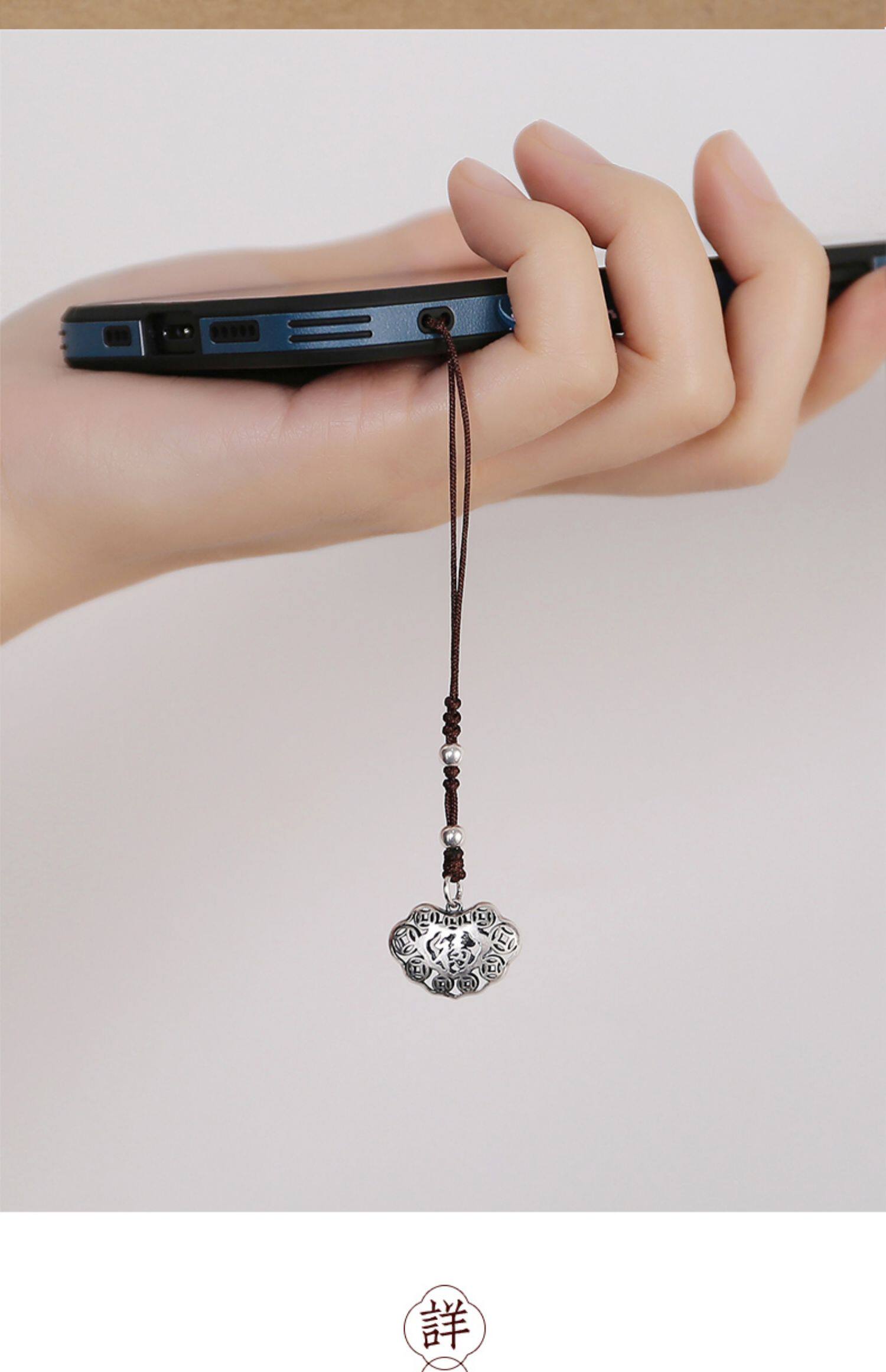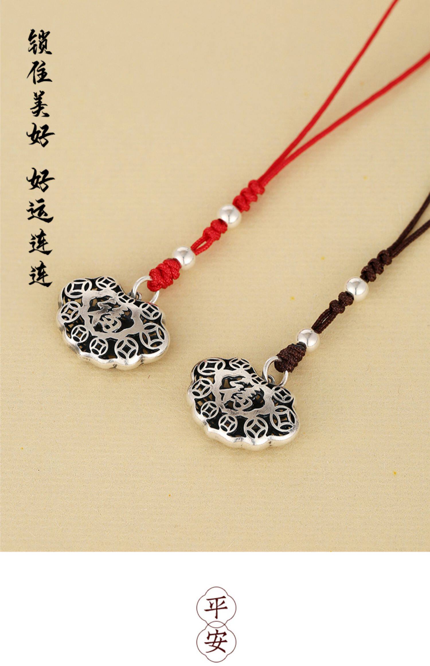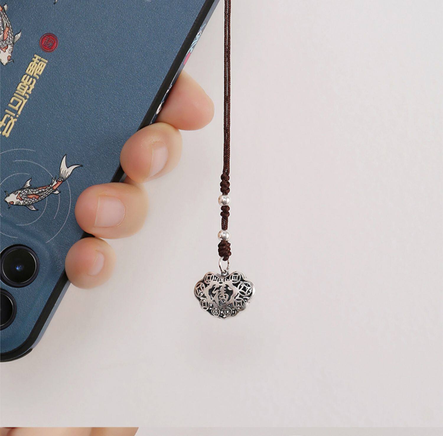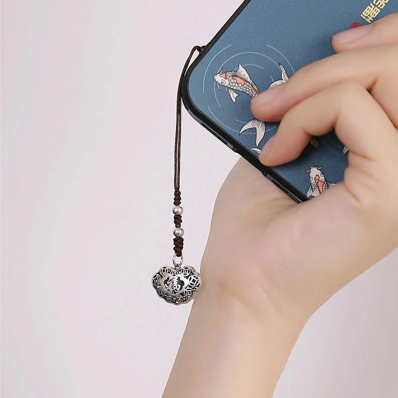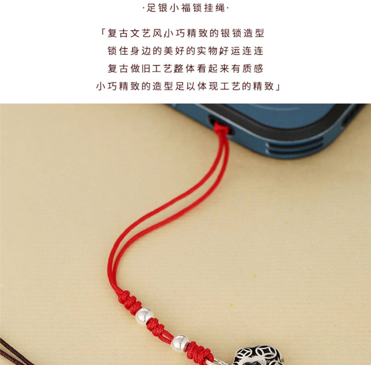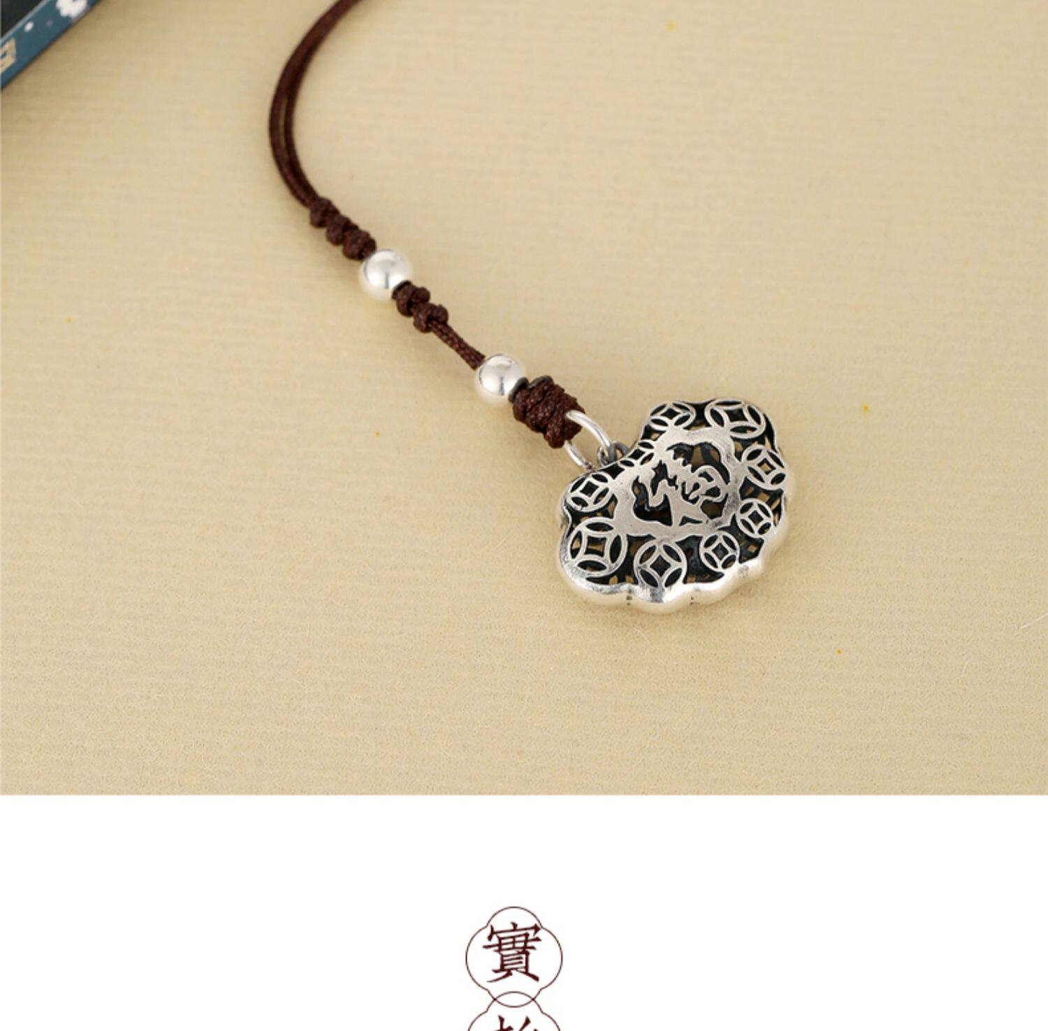 Высококлассная сумка, ретро двусторонний ремешок, резной маленький изысканный браслет из красной нити, подвеска, серебро 925 пробы