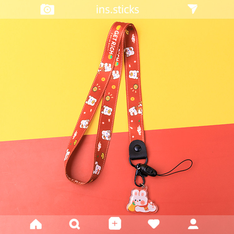 Ремешок, чехол для телефона, аксессуары, картхолдер, мультяшная красная цепочка для ключей, год кролика