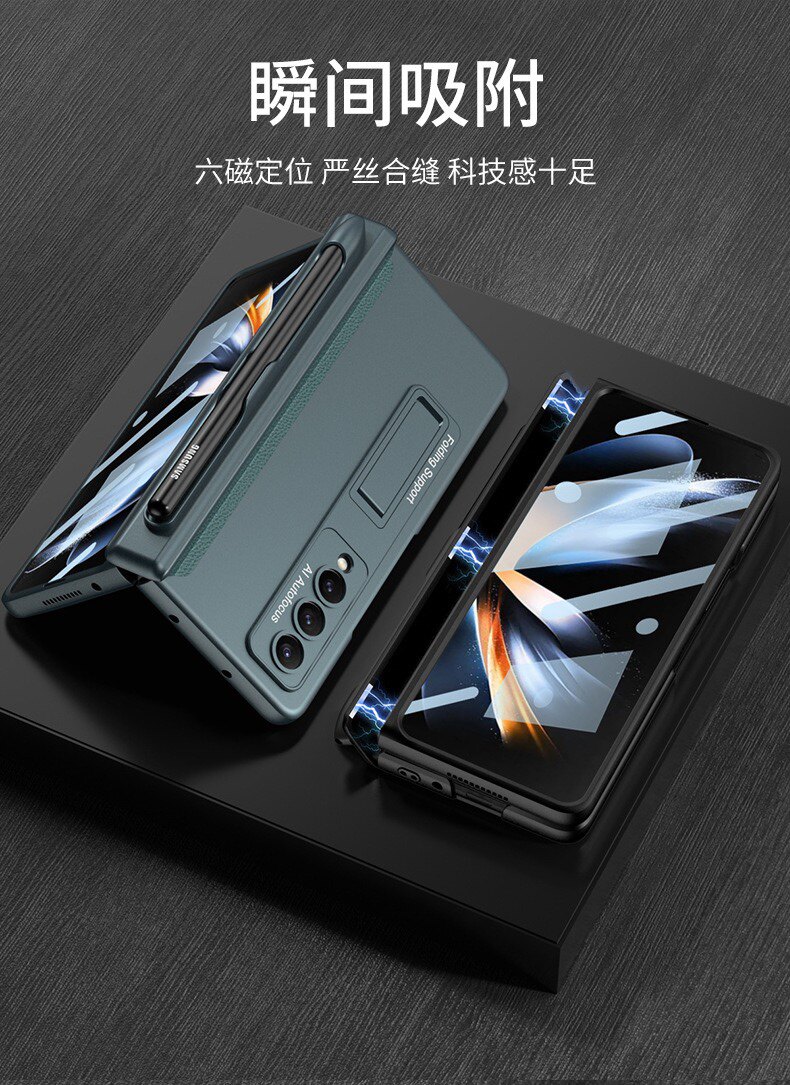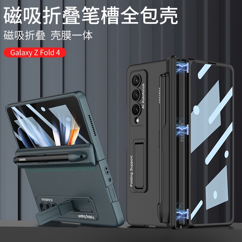 Подходит для Samsung Galaxy Z Fold4 Крушение мобильного телефона, корпус пленка Samsung Fold 4 Cover+пленка оболочка интегрированная защитная рукава магнито -поглощение кронштейна Fold4 Pen Slot Business