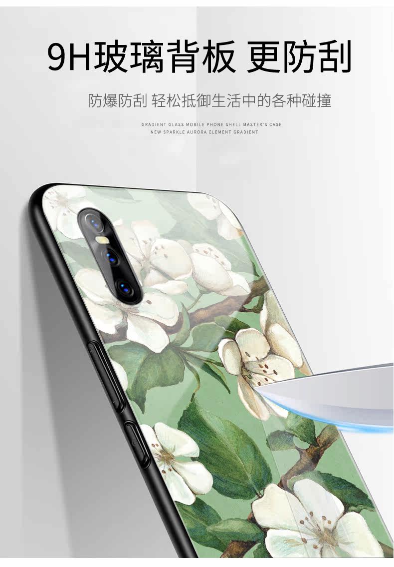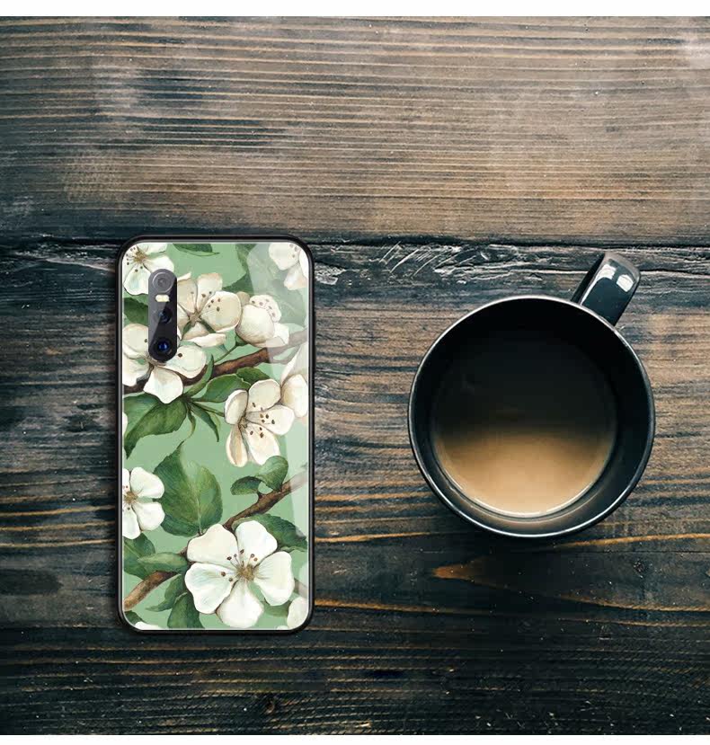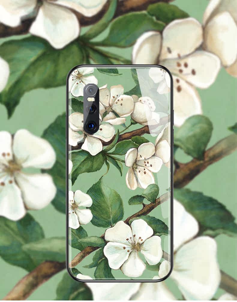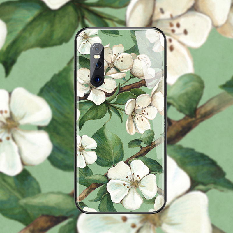 Vivo, ретро белый чехол для телефона, стеклянный защитный чехол *S, горный чай, в цветочек, x27, зеркальный эффект, x23, x21, женский стиль, x20, простой и элегантный дизайн, x9, x21, x7