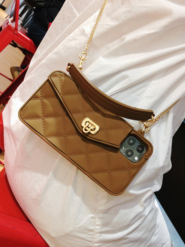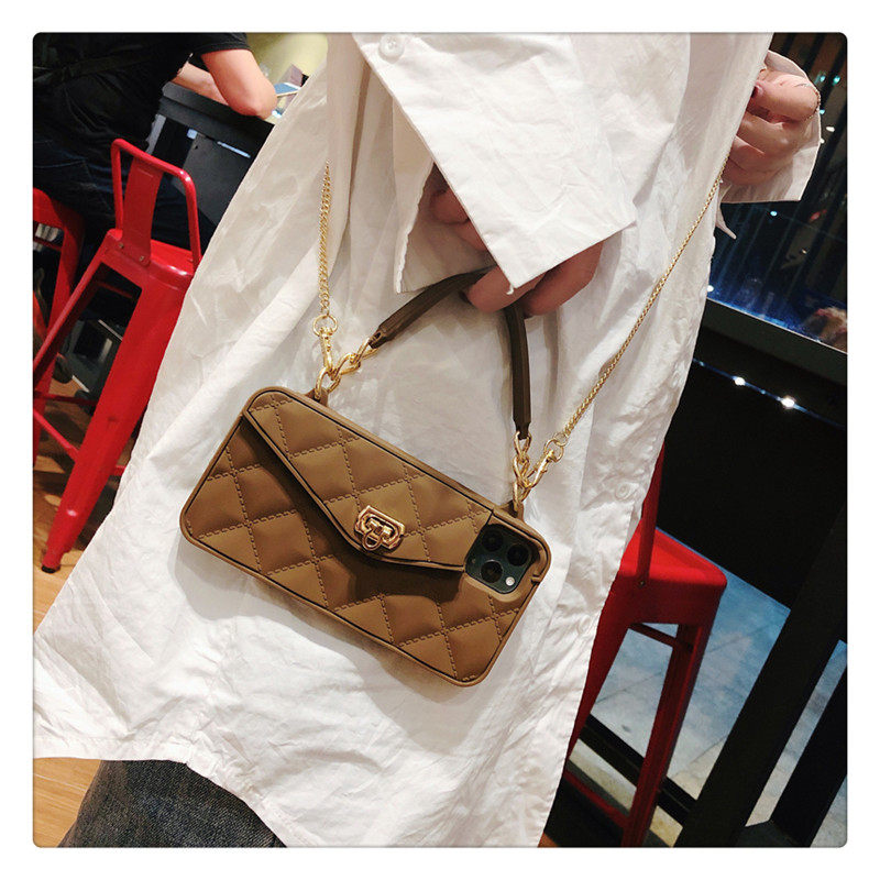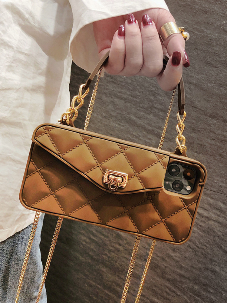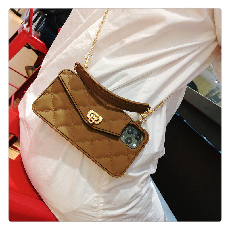 Совместимый чехол для телефона, сумка через плечо, цепь, коричневый картхолдер, высококачественный защитный чехол, 12promax, iphone, защита при падении, 14plus, популярно в интернете, изысканный стиль, легкий роскошный стиль