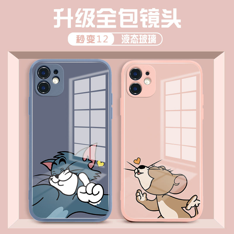 Apple, iPhone 12, чехол для телефона, стеклянный ультратонкий мультяшный iPhone 13 подходит для мужчин и женщин для влюбленных, iphone, зеркальный эффект, 12promax