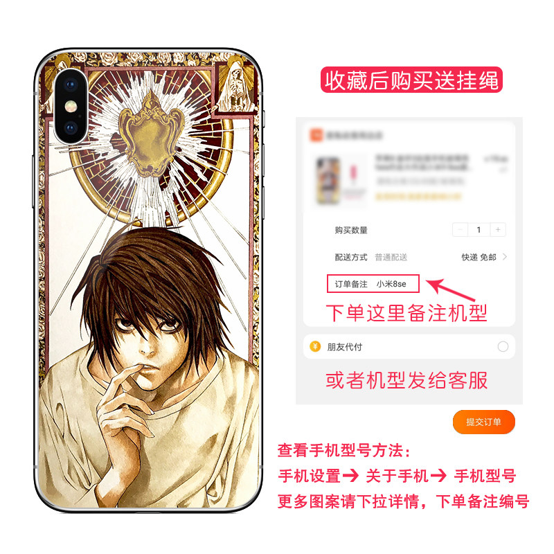 Чехол для мобильного телефона Death Note подходит для Apple 13 12pro 11 7/8plus xsmax xr Xiaomi 11 mix4 vivo iqoo7 Huawei p50 nova8oppo reno5 a93