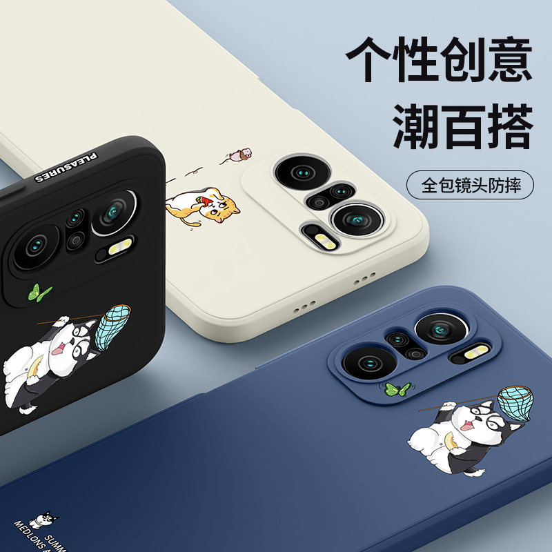 - Redmi K40/K40PRO [Navy Blue-Shiba inu крадет дыня] творческая линза, всеобъемлющий анти-пакет