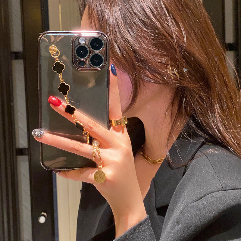 Apple, iPhone 13, чехол для телефона, прозрачная цепь, силиконовый защитный чехол, креативный небольшой iPhone13 Pro, защитная сумка, четырехлистный клевер, изысканный стиль, iphone, 12promax, популярно в интернете, DIY, защита при падении