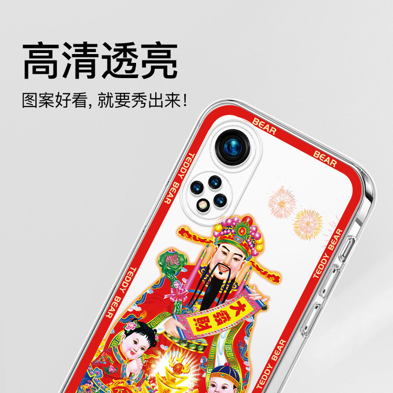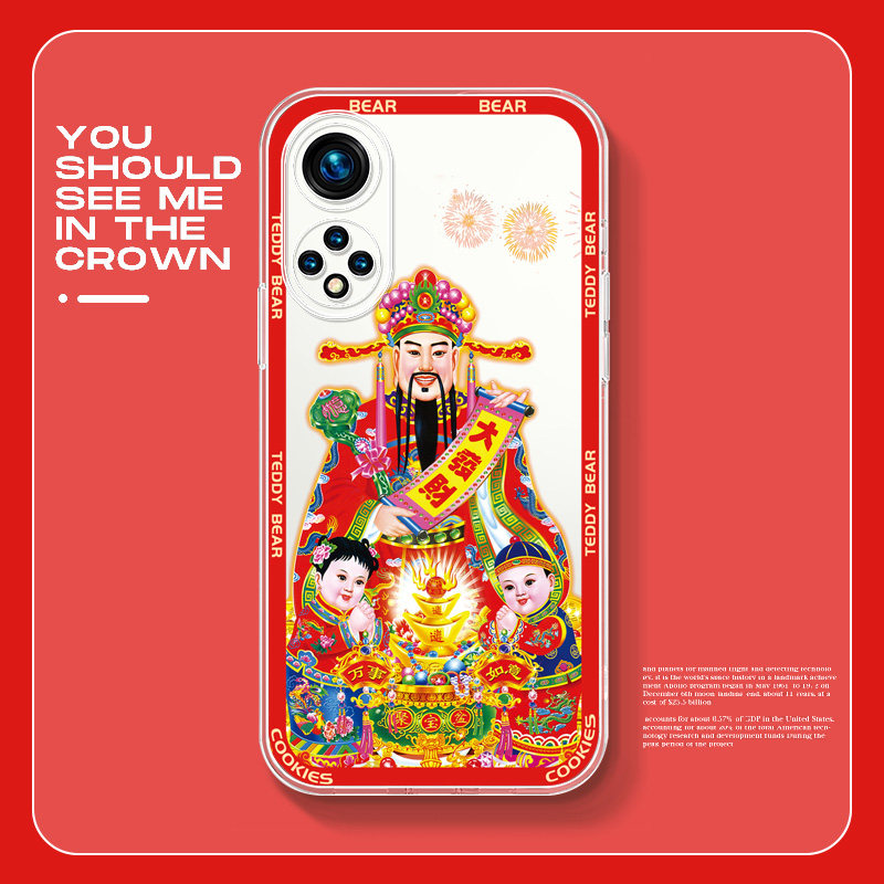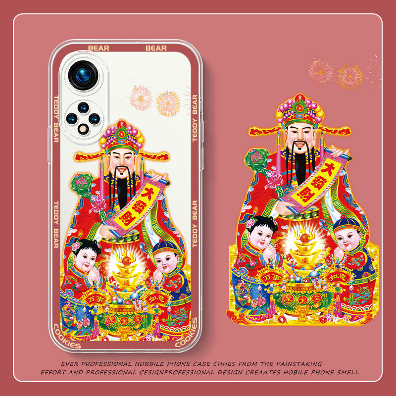 - Прозрачный прямой край TPU-Honor 50-Transparent White-Z1291 God of Wealth