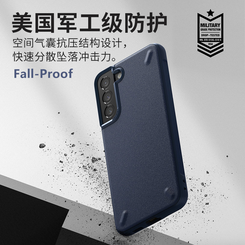 - [Navy Blue] Samsung S22 ★ 100%Anti -FingerPrint ★ Военно -уровни анти -падения