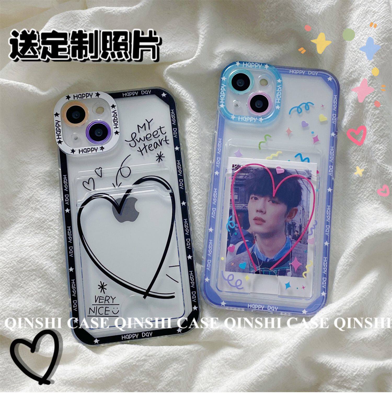 勤仕 Apple, брендовый совместимый чехол для телефона, милый iPhone 14 для влюбленных, прозрачная фотография, картхолдер, iPhone13 Pro, силиконовый защитный чехол, iphone, новая коллекция, DIY, женский стиль, 11promax