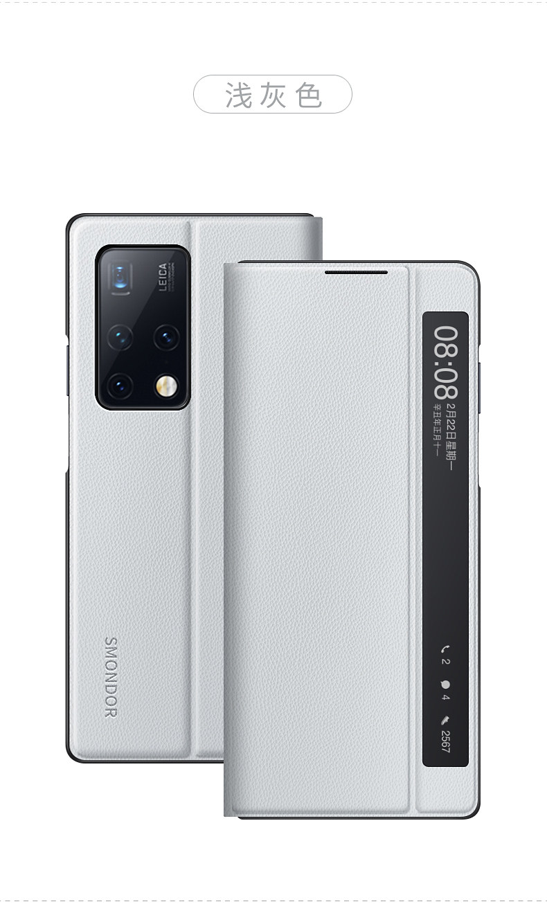 - Huawei Mate X2 [Откидная крышка из натуральной кожи | Серый]