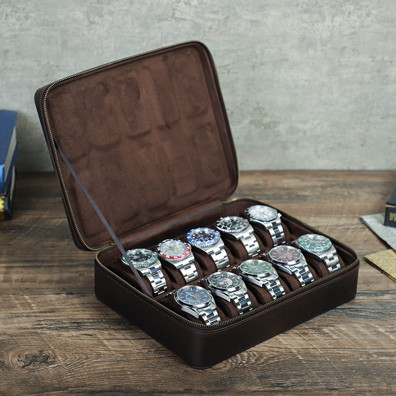10 слот -часовой рулон кожаная дисплей для часов, ящик для часов, мужчины, женщины