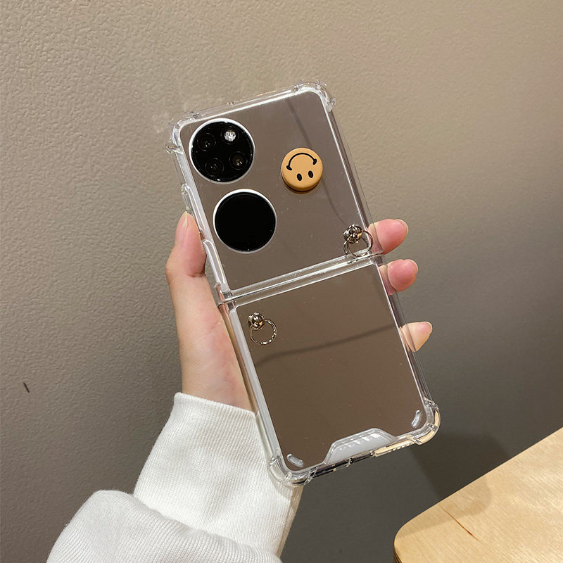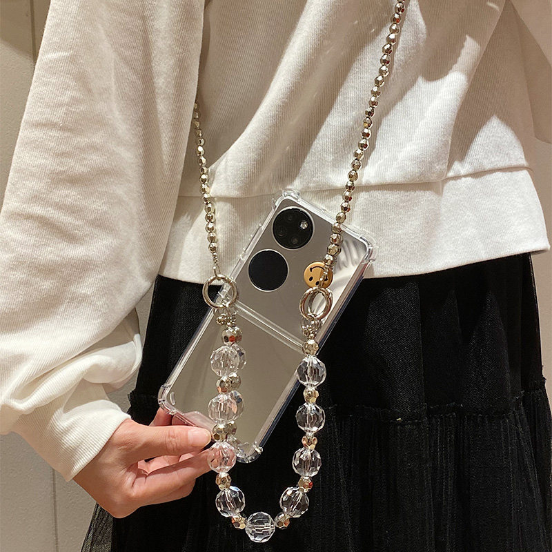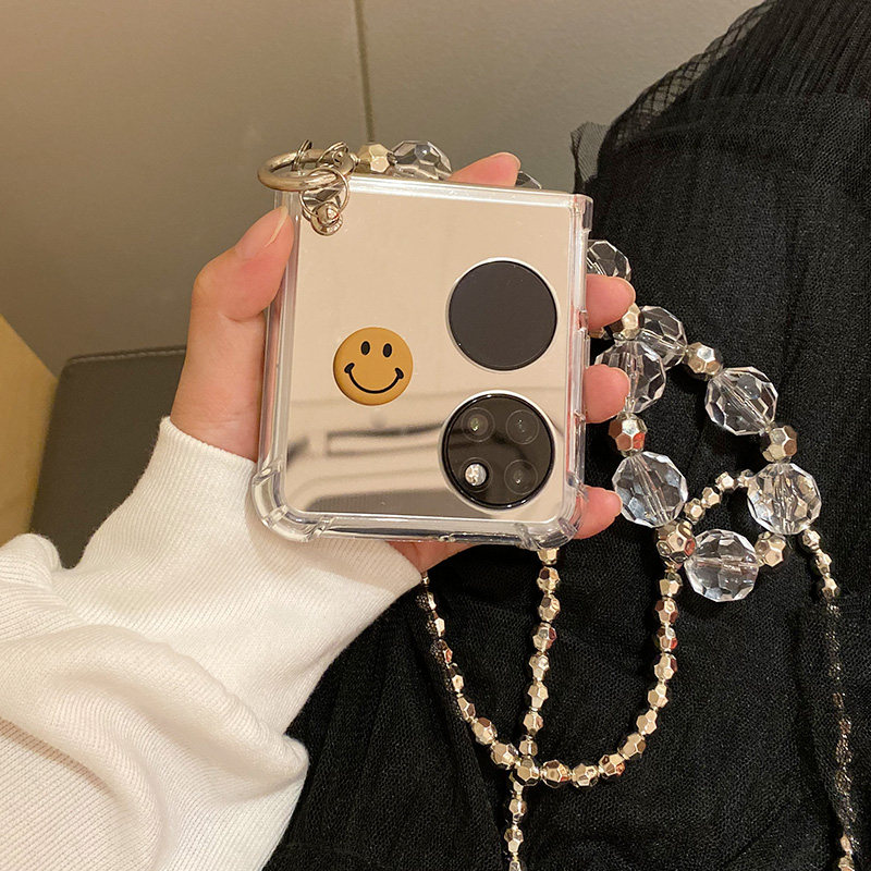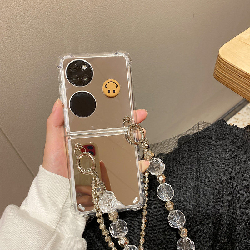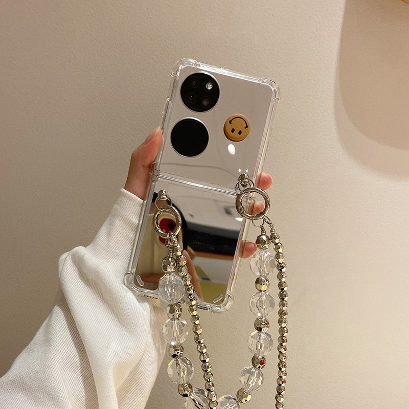 Huawei, брендовый серебряный совместимый складной чехол для телефона, сундук с сокровищами, ремешок для сумки, модный защитный чехол, простой и элегантный дизайн, зеркальный эффект, P50, складывающийся экран, P50