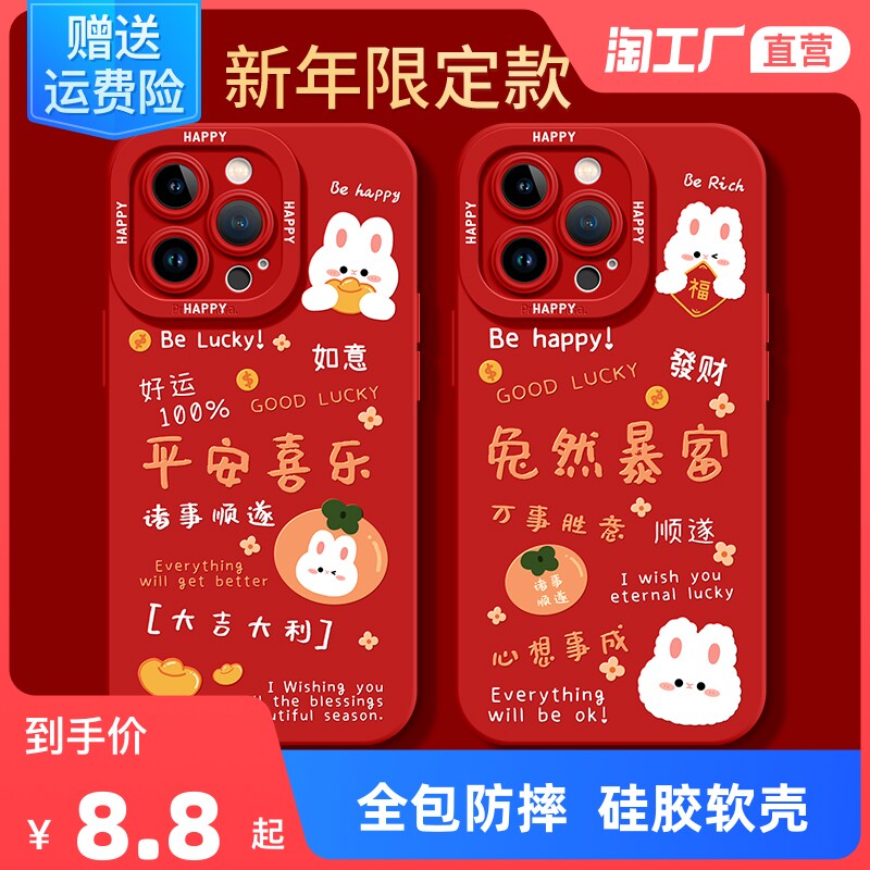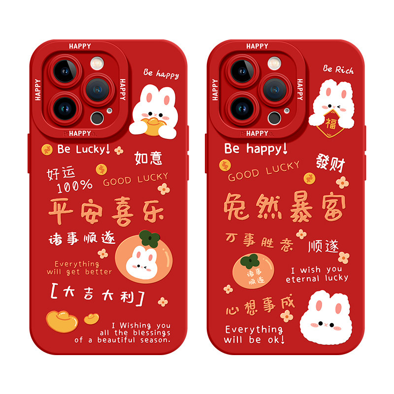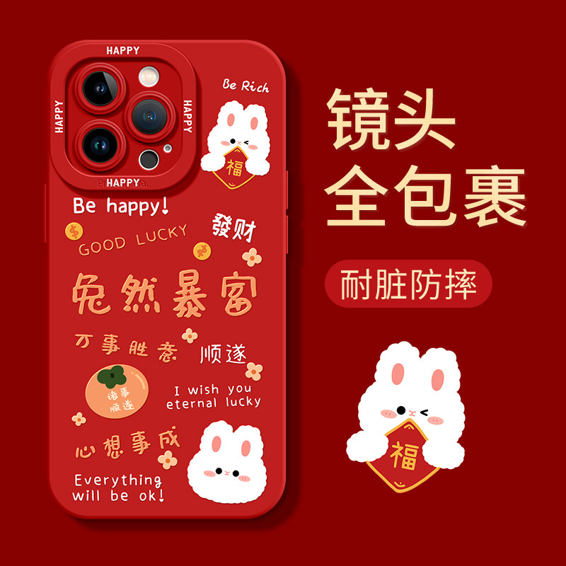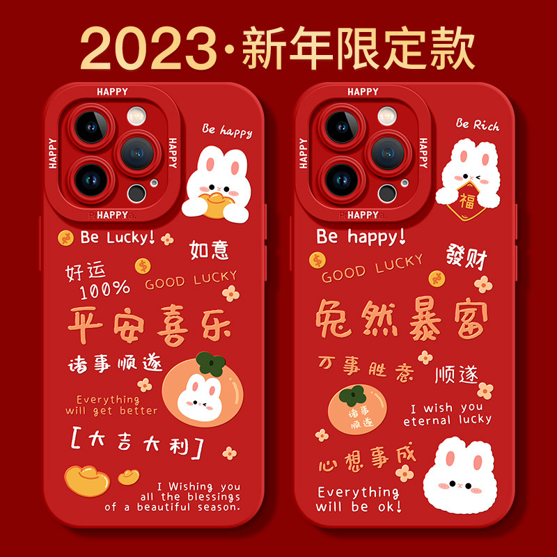 Apple, защитный амулет, совместимый iPhone 14, силиконовый чехол для телефона, красный iPhone14 Pro для влюбленных, 14promax, iphone, защита при падении, женский стиль, год кролика, 8plus