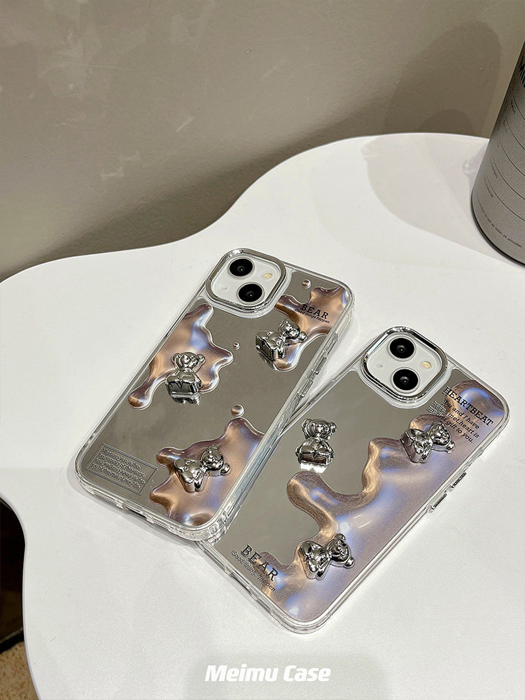 Apple, трехмерный совместимый iPhone14 Pro, iPhone 13, чехол для телефона, мультяшный iPhone14 Pro, мобильный телефон, зеркальный эффект, с медвежатами, iphone, 13promax, защита при падении