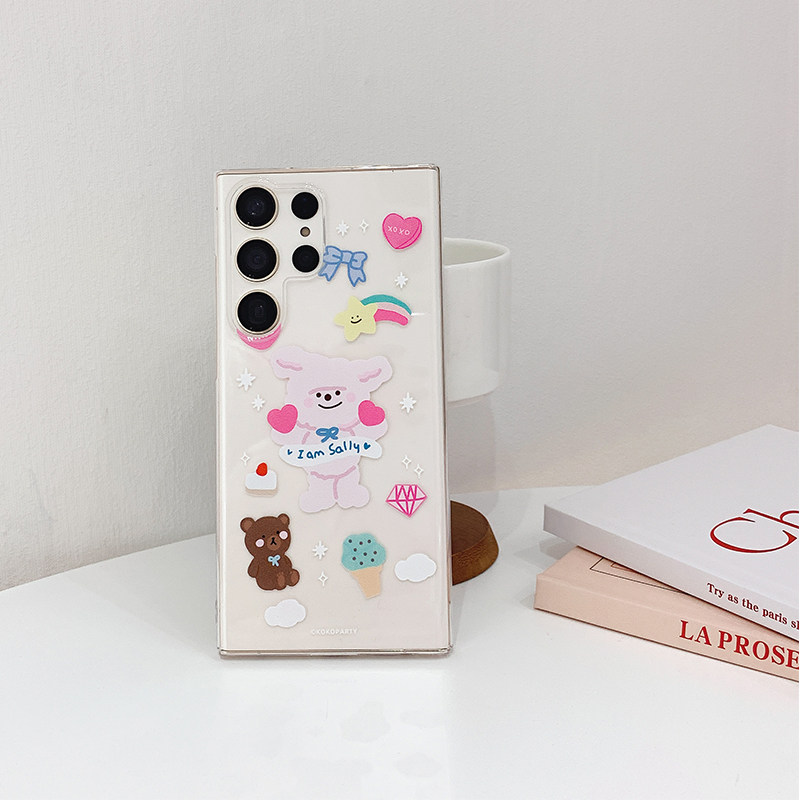 Samsung, S24, совместимый прозрачный чехол для телефона, брендовый мультяшный милый кролик, защитный чехол, новая коллекция, японские и корейские, 10plus, простой и элегантный дизайн, защита при падении