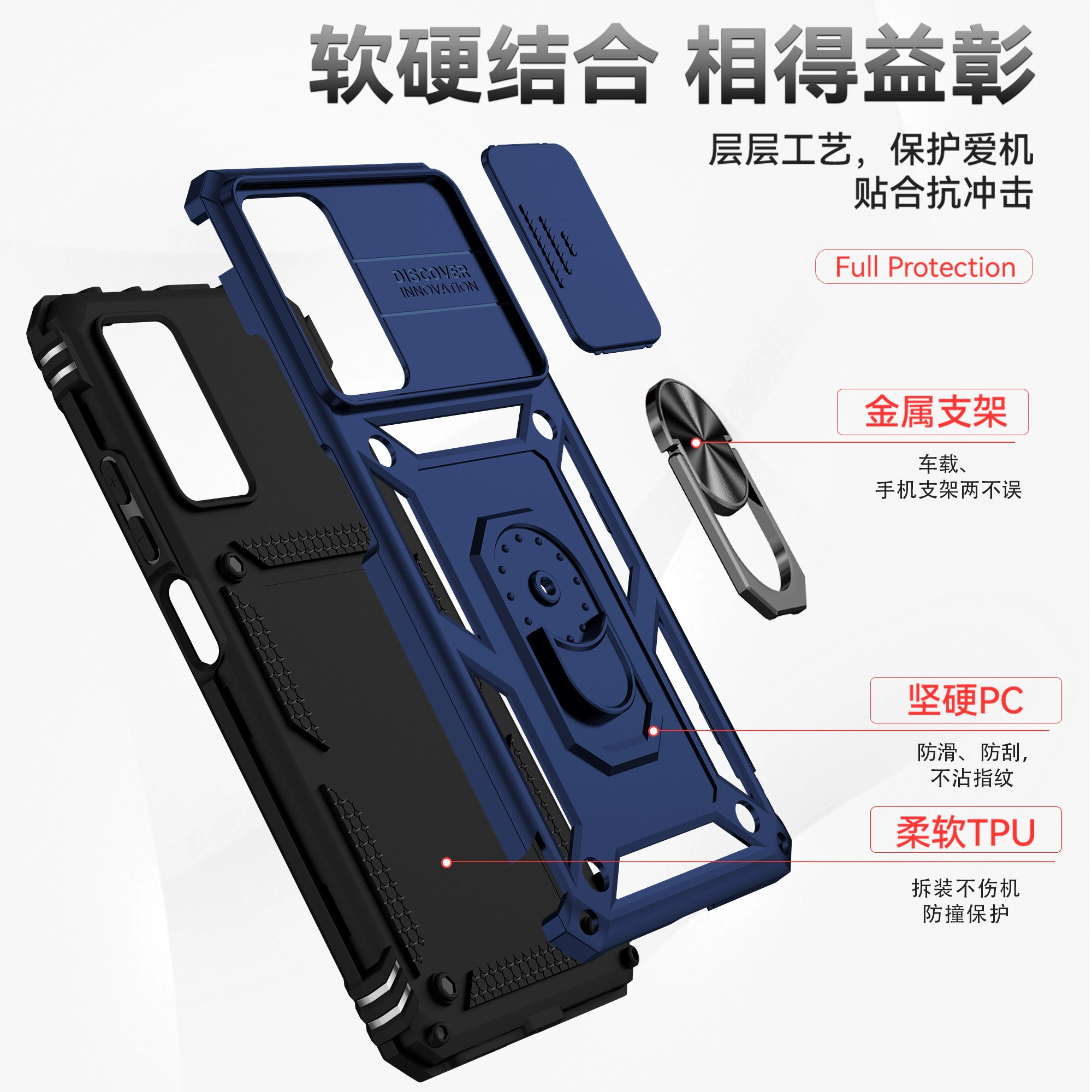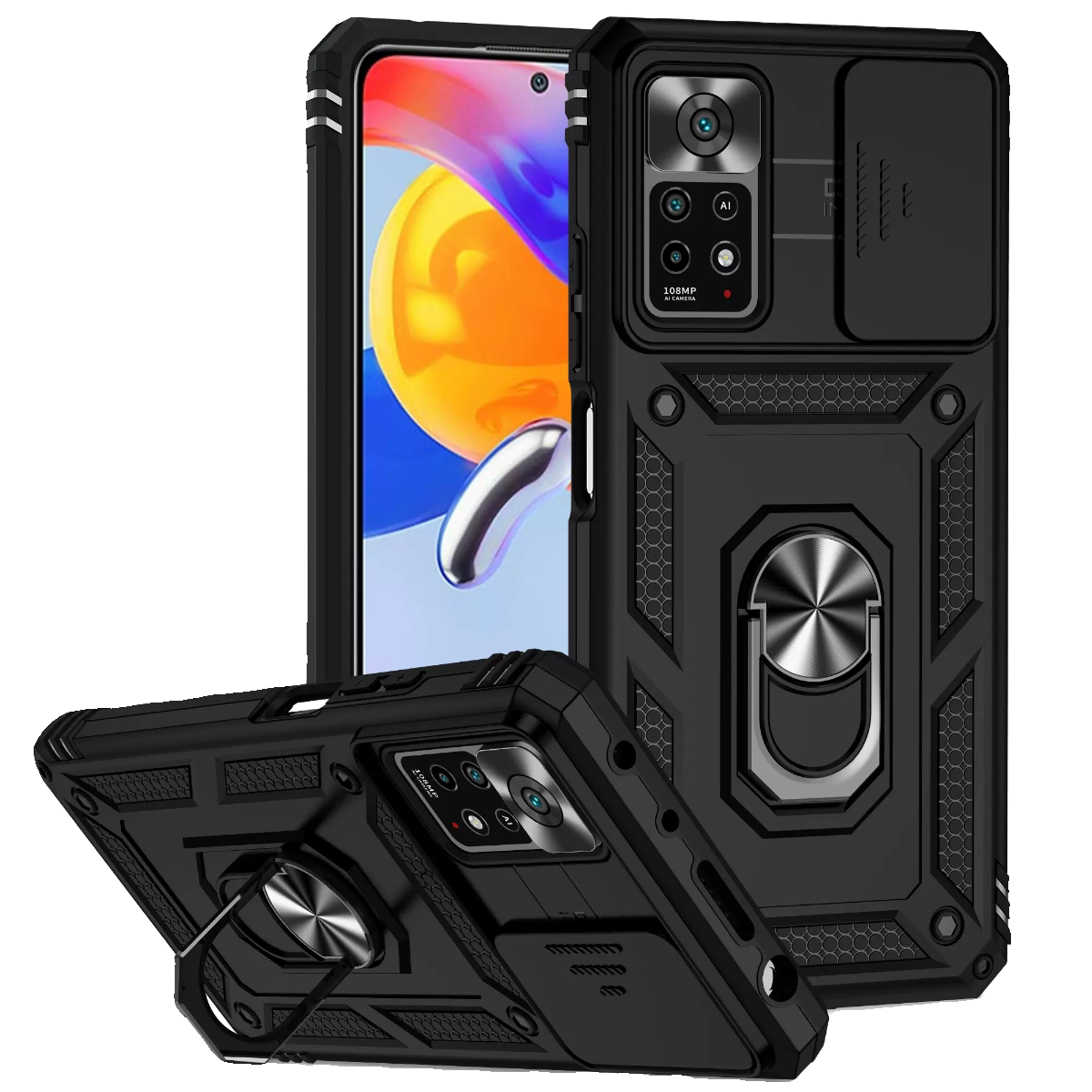 Подходит для защитного чехла для мобильного телефона Redmi note11, защитного чехла военного уровня для защиты от падения Redmi note11S, новой международной версии note11pro, международной версии, слайдера с магнитным кольцом, держателя универсального модного чехла