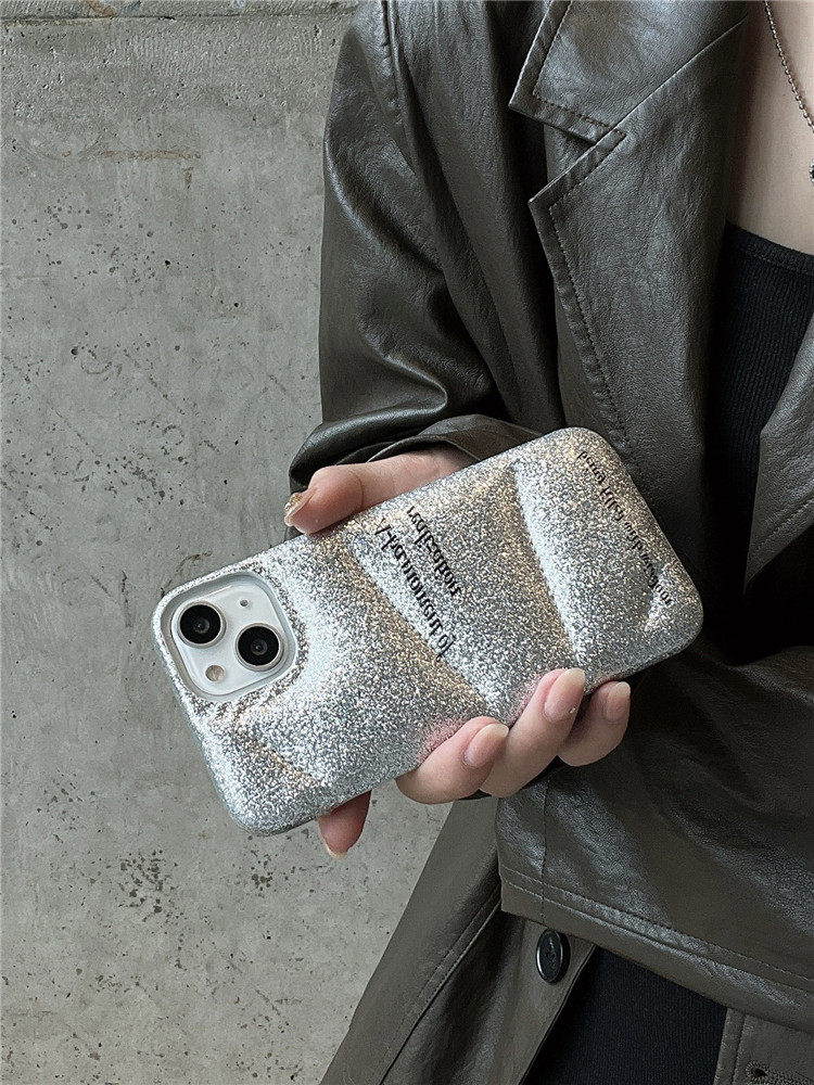 Apple, серебряный совместимый пуховик, iPhone 15, чехол для телефона, iPhone13 Pro, iPhone12 Pro, изысканный стиль, iphone, 14promax, защита при падении, популярно в интернете, японские и корейские