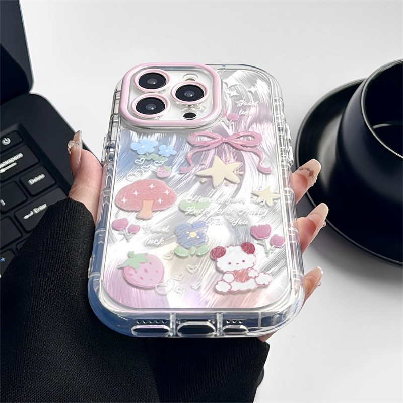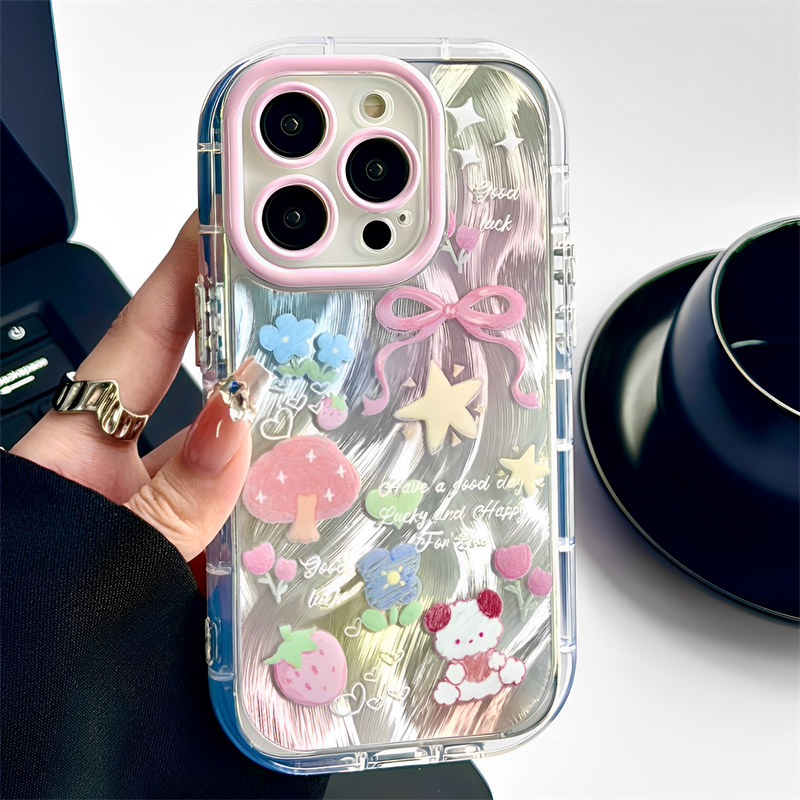Apple, совместимая клубника, iPhone14 Pro, iPhone 15, чехол для телефона, iPhone12 Pro, объектив, свежий защитный чехол, в цветочек, iphone, 13promax, защита при падении, градиент, изысканный стиль