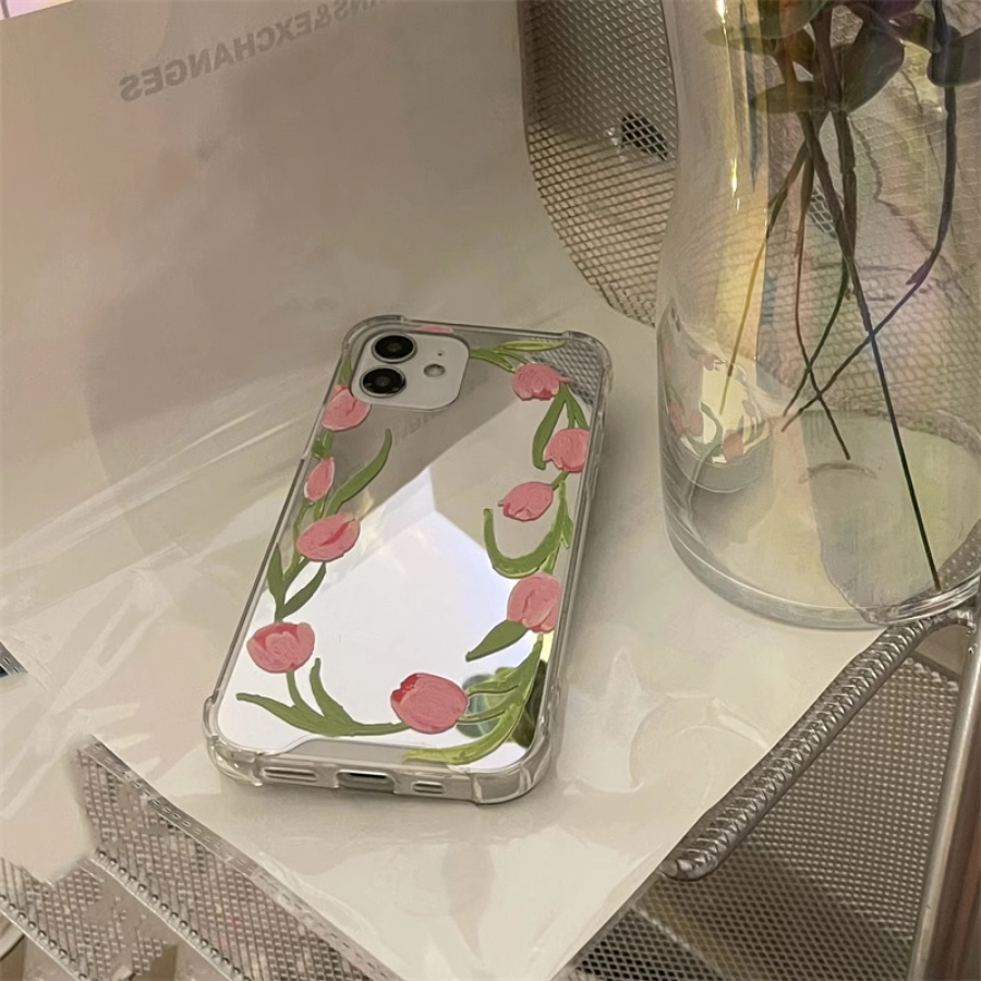 Apple, huawei, xiaomi, совместимый чехол для телефона, силиконовое свежее зеркало, в цветочек, iphone, 16promax, изысканный стиль