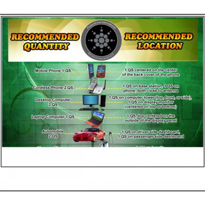 - Квантовый щит может использоваться на любом устройстве или устройстве, излучающей электронмагнитную частоту (ЭМФ) или электронмагнитное излучение (EMR), такие как мобильные телефоны, домашние телефоны, автомобили, микроволны, компьютеры, игровые консоры, домашние приборы и т. Д.