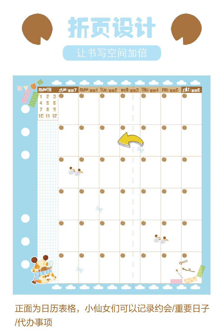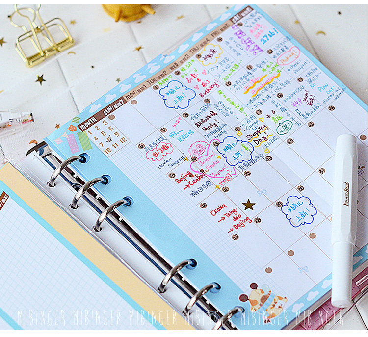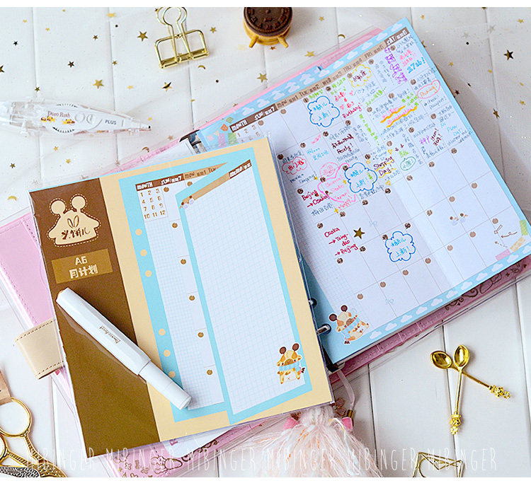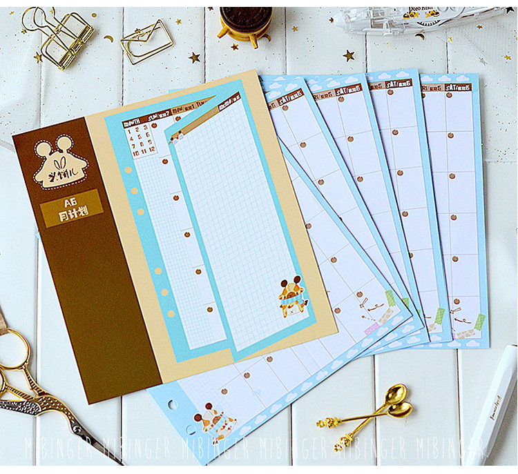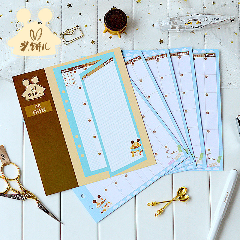 米饼儿 Мультфильм оригинал A6 Hand Account Ежемесячная плана Live Page Page Fold Замена внутреннего ядра Square