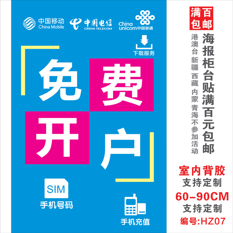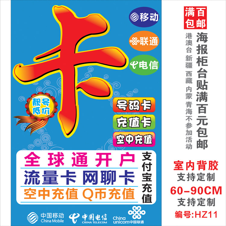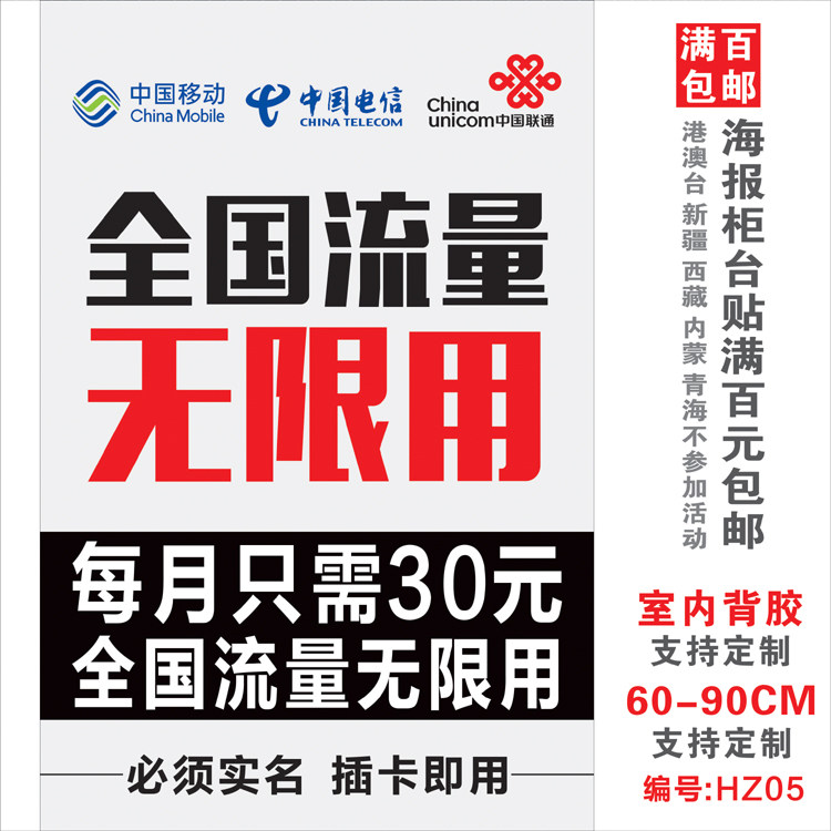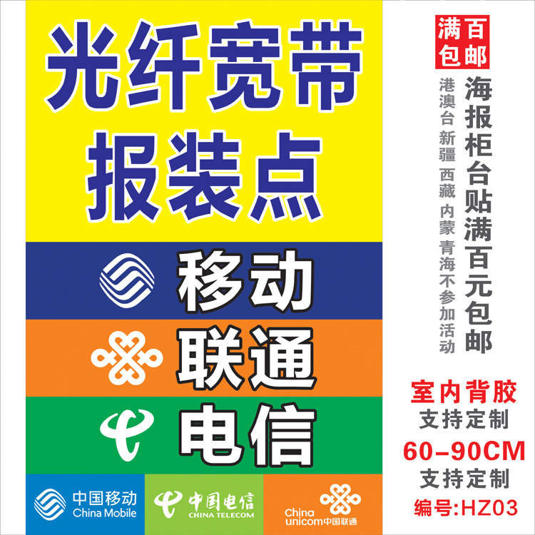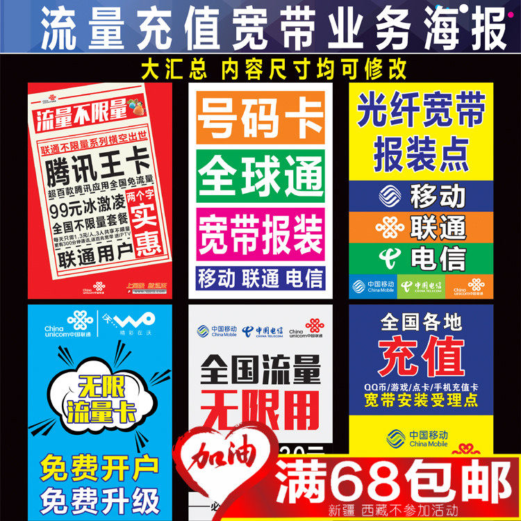 Китай мобильная телекоммуникация Unicom широкополосная реклама Бизнес -реклама Плакат наклейка рекламные пост -мобильные магазины декоративные принадлежности