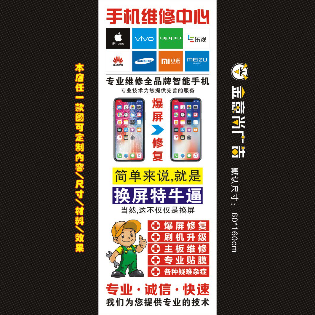 Рекламные и декоративные материалы для ремонта магазина мобильных телефонов, плакаты по ремонту треснутого экрана, наклейки на дверные косяки магазина мобильных телефонов, новый стиль