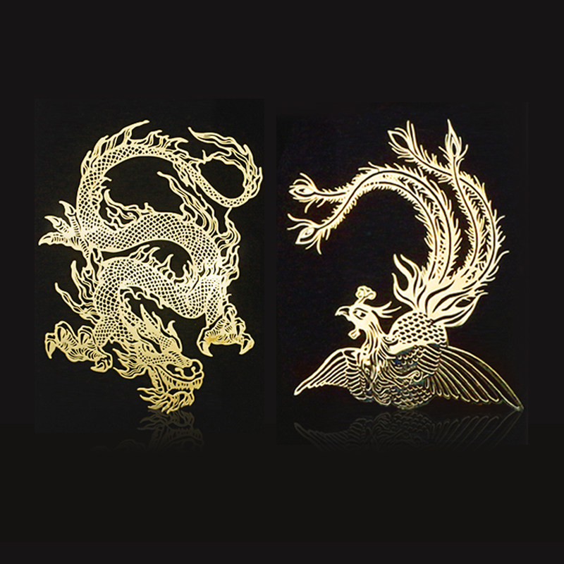 Китайский ветровой дракон и Phoenix 24K Gold Exquisite Mobile Phone Sticker Dragon Totem Phoenix Персонализированная декоративная наклейка Персонализированная автомобильная наклейка