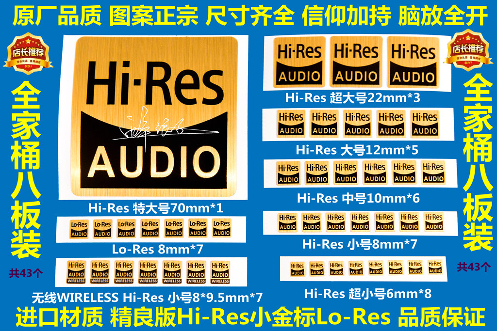 Высококачественная золотая этикетка Hi-Res Lo-Res подходит для Sony Sony Sticker Spot Spot Version