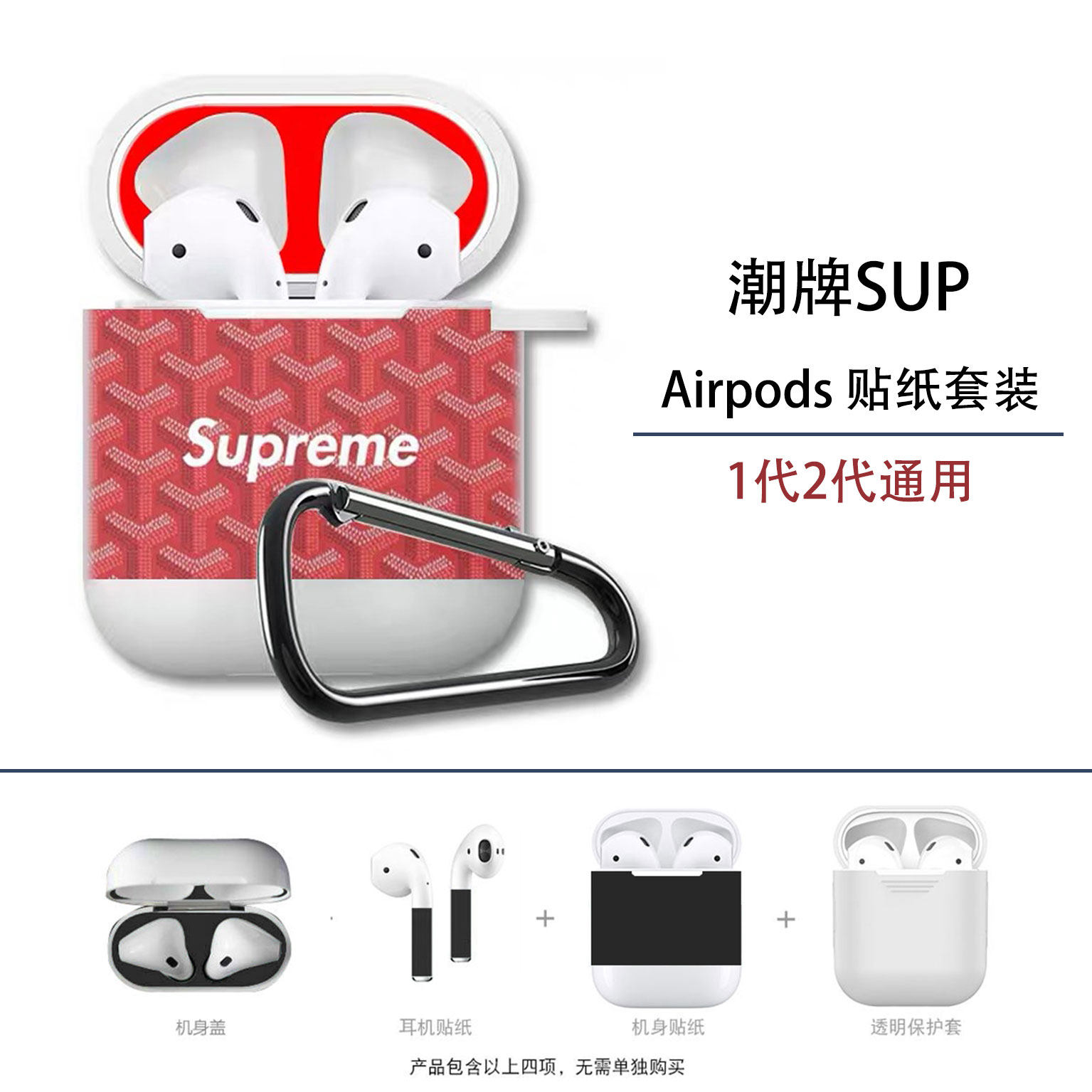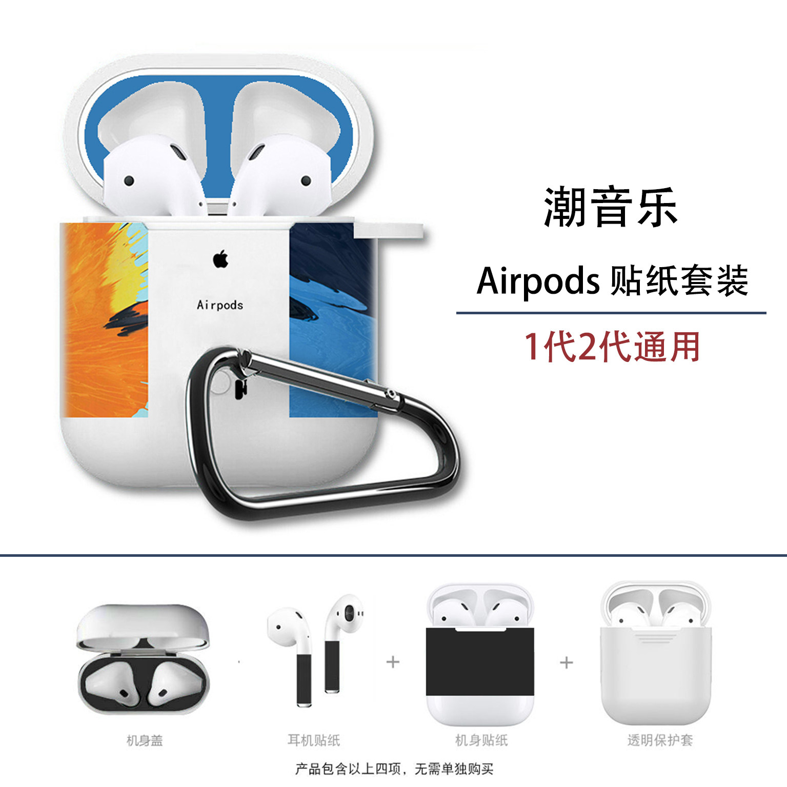Apple Airpods защищающая крышка прозрачная все -инклюзивные беспроводные блюэт -блюэтут наклейка с полной -Membrane All -Pperson One -Two персонализированное бренд Tide 2 Generation Dust -Preses