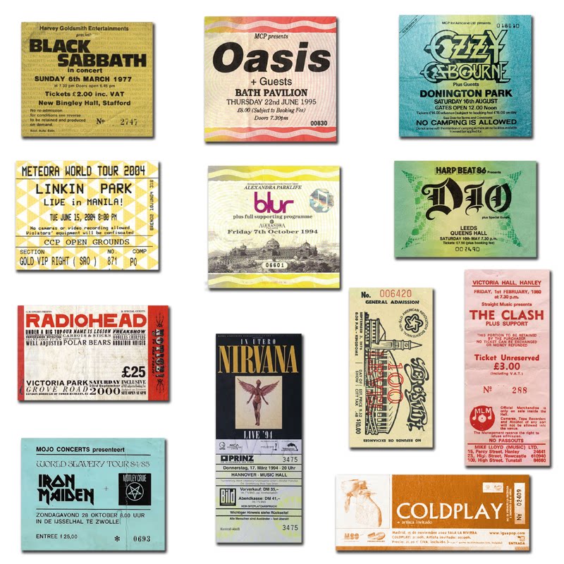 Blur Nirvana Coldplay Retro Rock Band Ticket Root Root Buggage iPad Mobile Phone Shell Shell Sticker