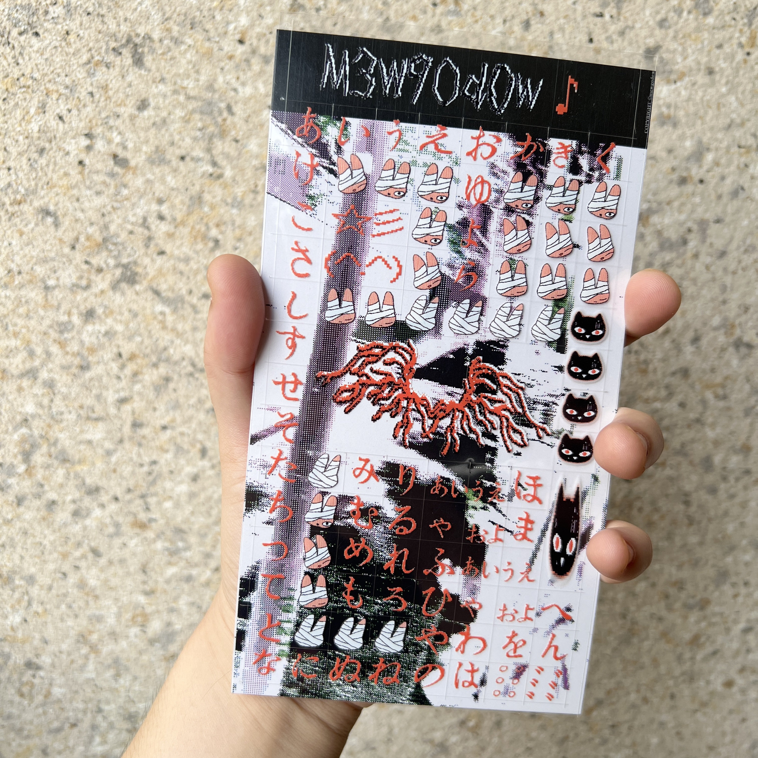 Meewgodow Millennium Hunting Strange Text Pixel Game Оригинальный японский текст прозрачный клейк -наклейка iPad Phone