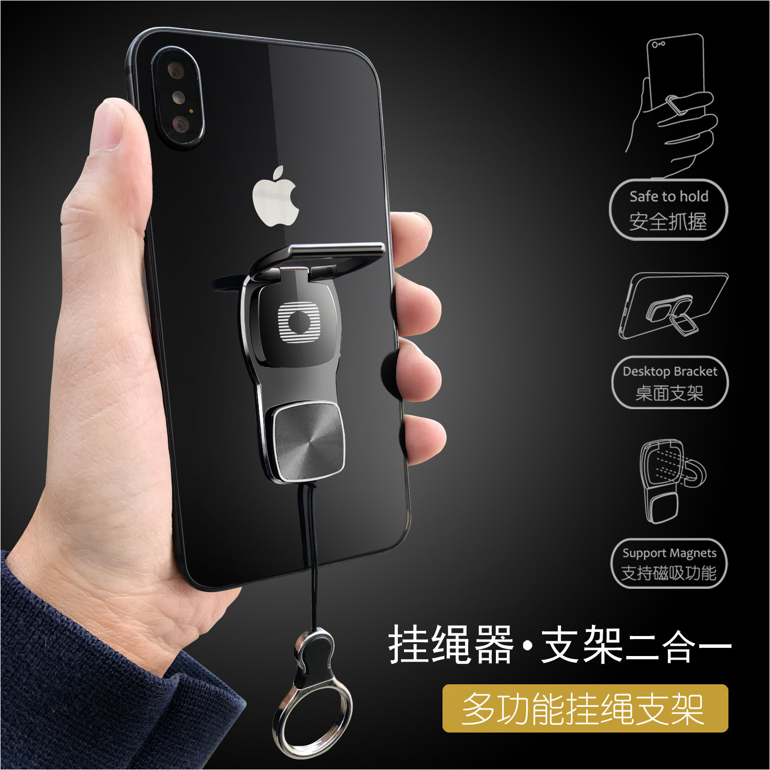 Apple, huawei, xiaomi, oppo, мобильный телефон, металлический ремешок, кольцо, трубка, универсальная подвеска