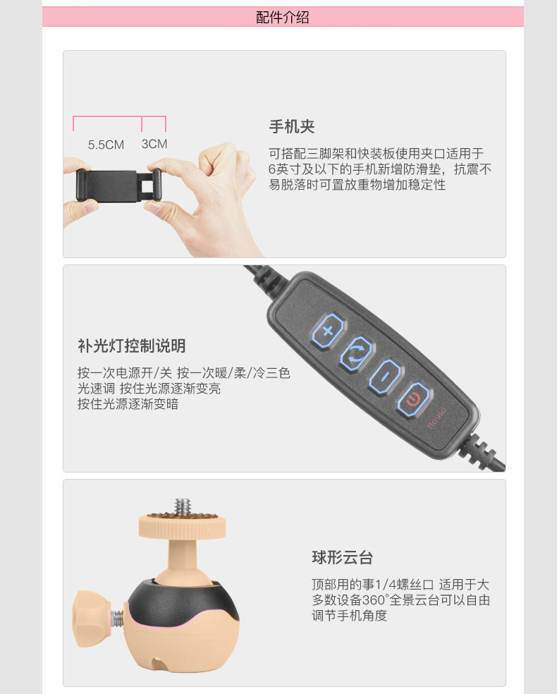 Мобильный телефон, трубка, штатив, настольный заполняющий свет, дорожное универсальное напольное оборудование