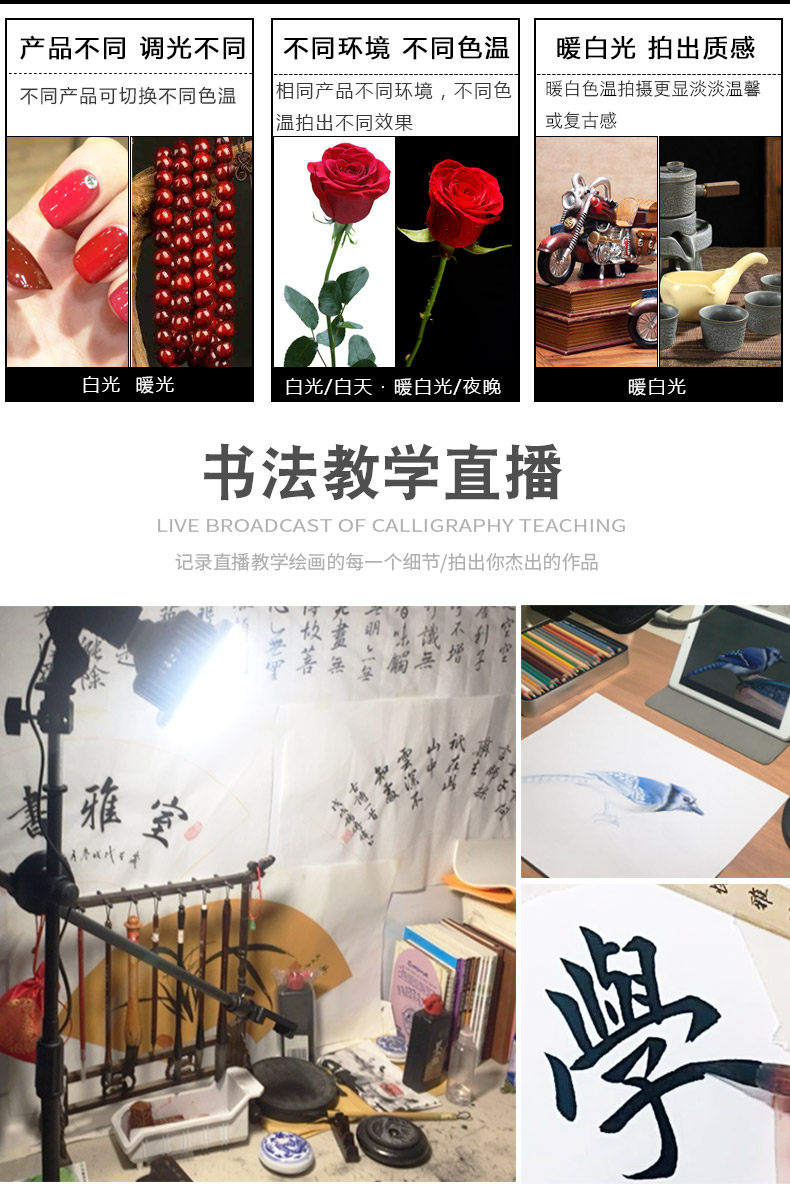 Мобильный телефон внизу съемки подставки для занятий на рабочем столе съемки онлайн -обучение видео Дополнительные световые лампы, три картины штатива, каллиграфия снимает продовольственную видео -сеть микро -класса, пирсинговая стрельба по поворотам