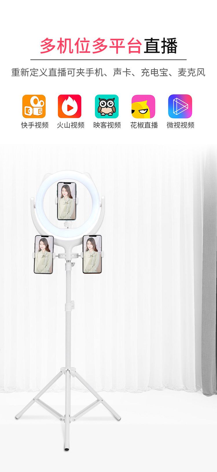 Мобильный телефон, оборудование, регулируемая трубка, заполняющий свет, штатив, телескопическая угловая рама, портативная напольная опорная рама, полный комплект, популярно в интернете