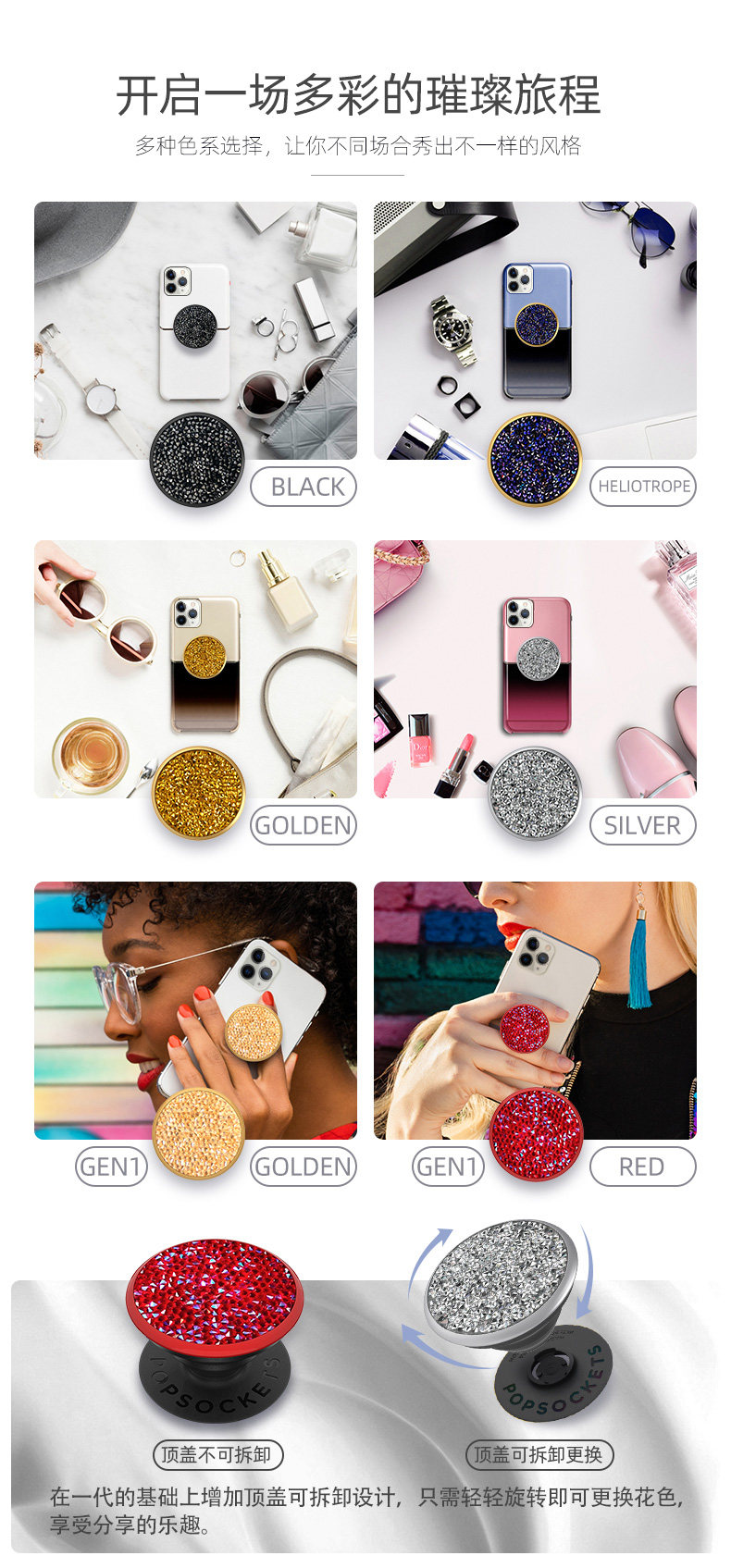 PopSockets Swarovski, браслет из кварца, мобильный телефон, подушка безопасности, телескопическая трубка, кушон