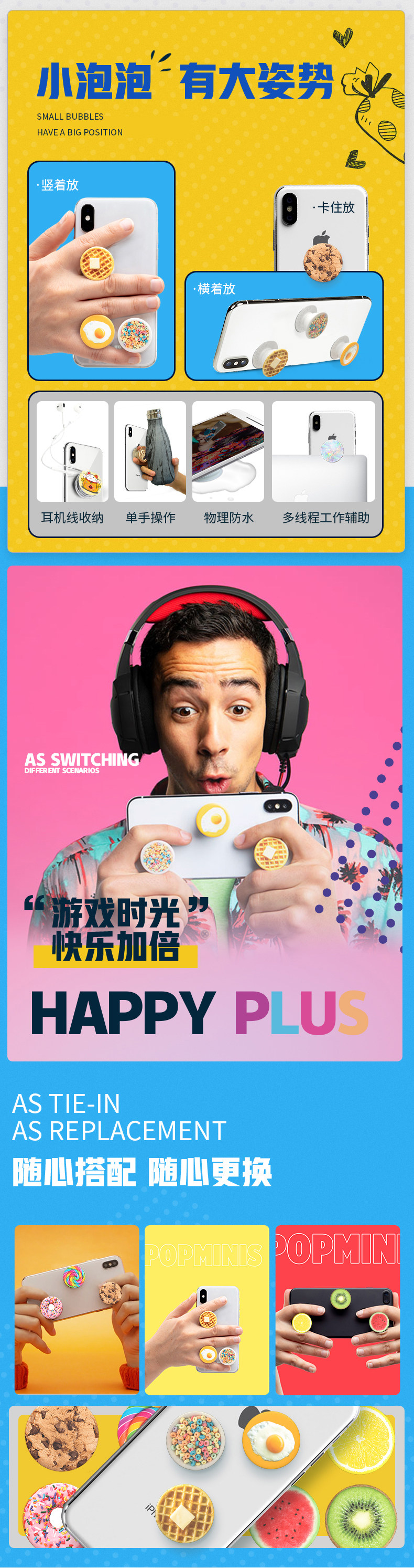 PopSockets Маленький мобильный телефон, подушка безопасности, трубка, настольный телескопический складной кушон