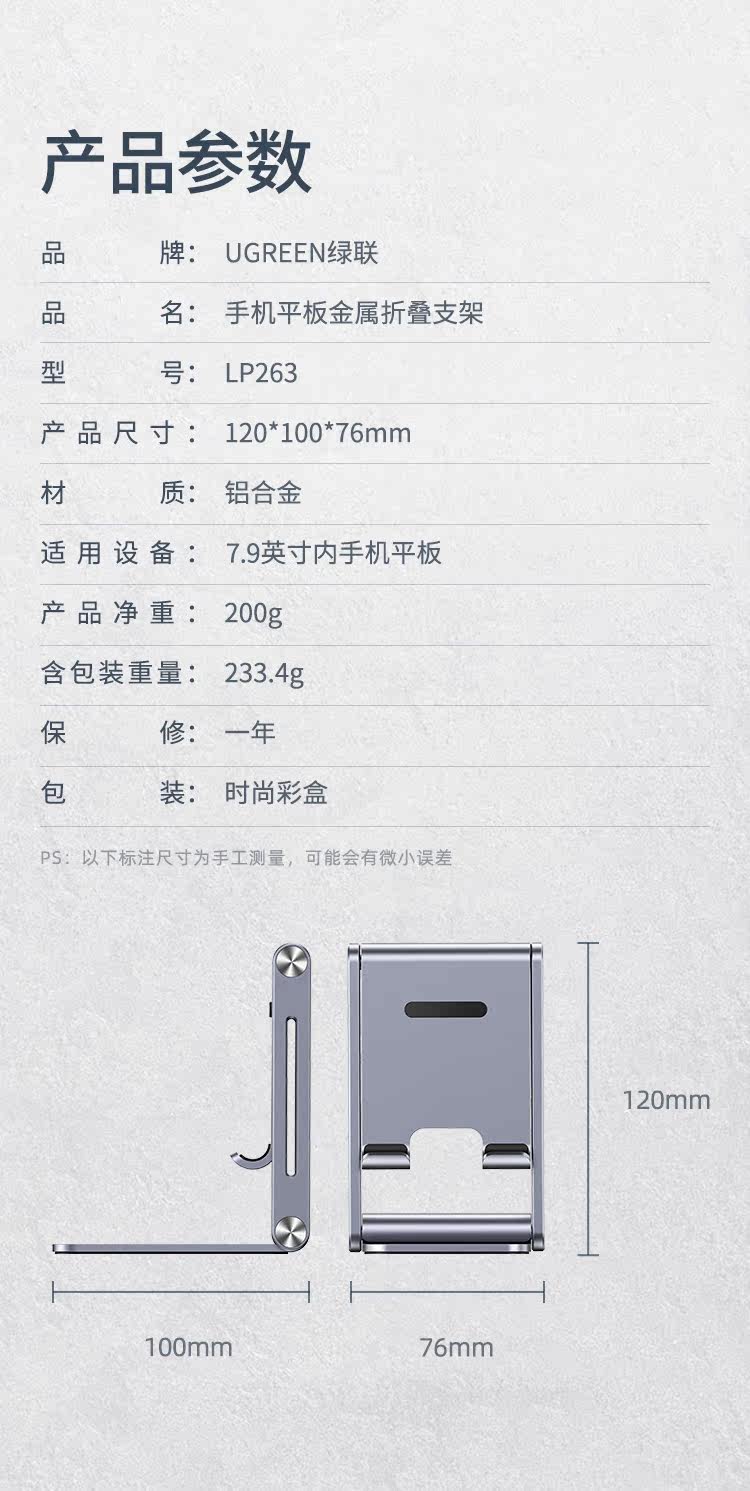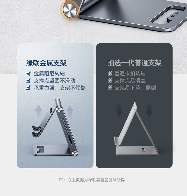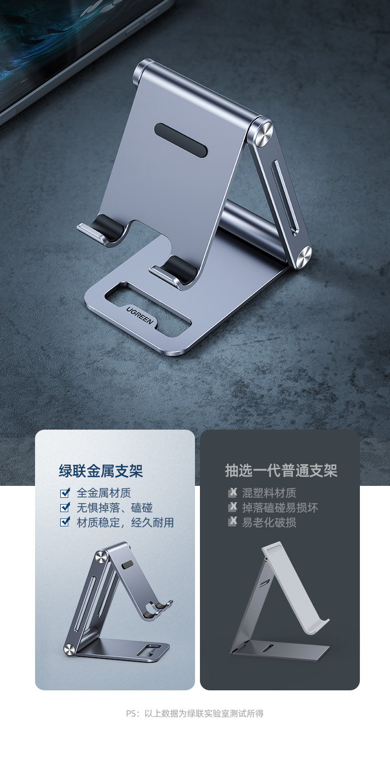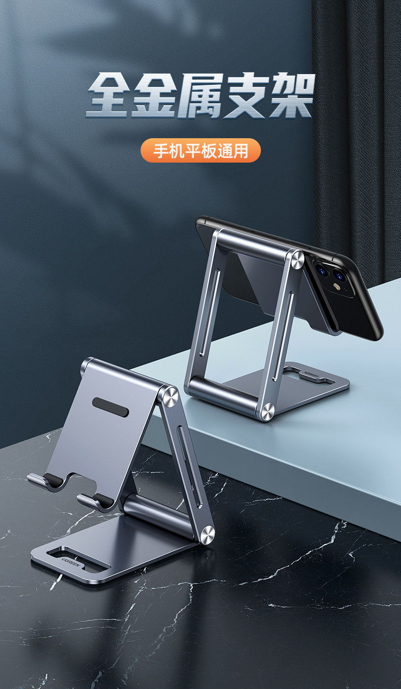 绿联 Металлический мобильный телефон, планшетный складной портативный настольный кронштейн, регулируемая металлическая опорная рама, алюминиевый сплав, фиксаторы в комплекте