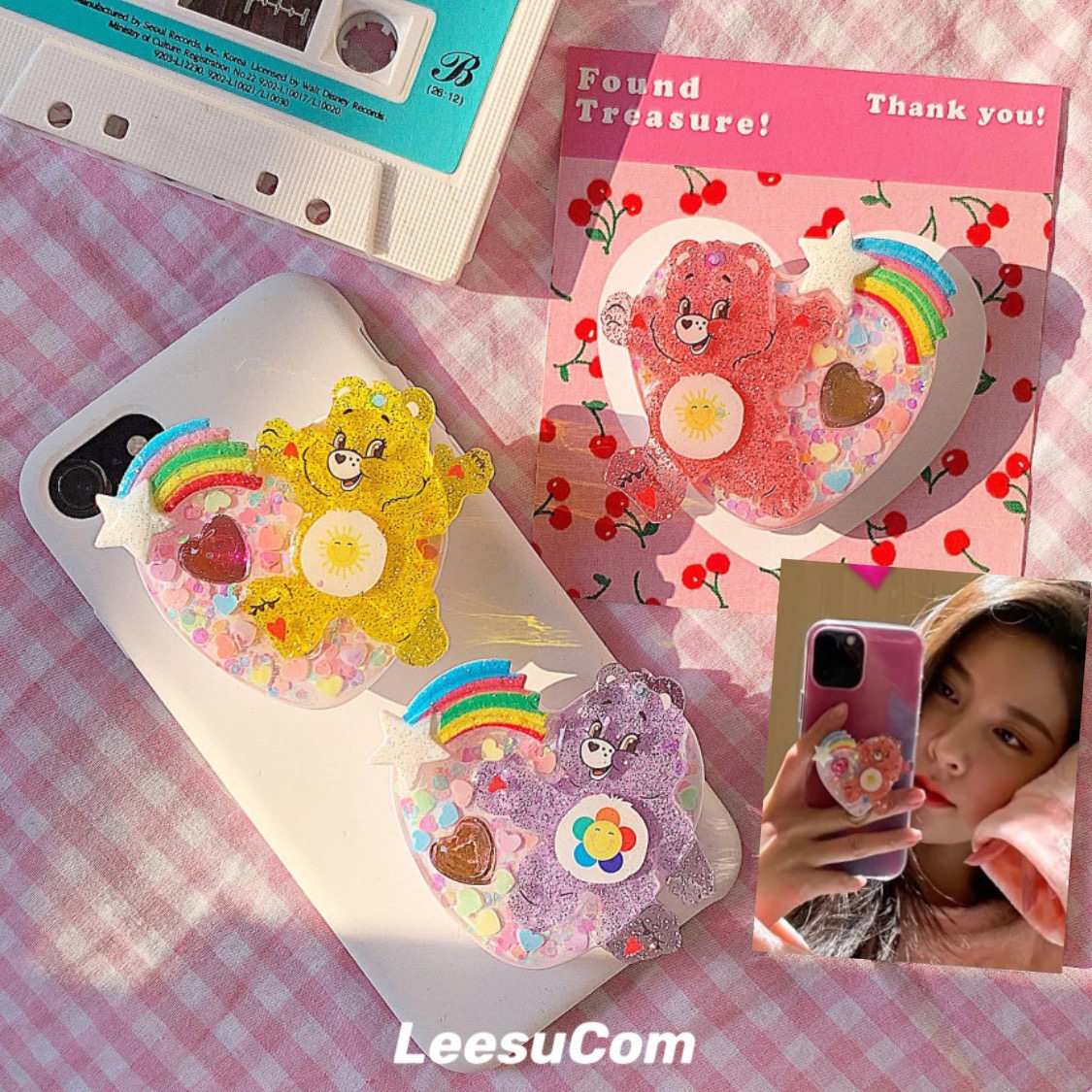 [Готовый запас] Ins Корейский дизайнер закупок Держатель для мобильного телефона ручной работы с радужным медведем и блестками в том же стиле, что и Song Yanfei