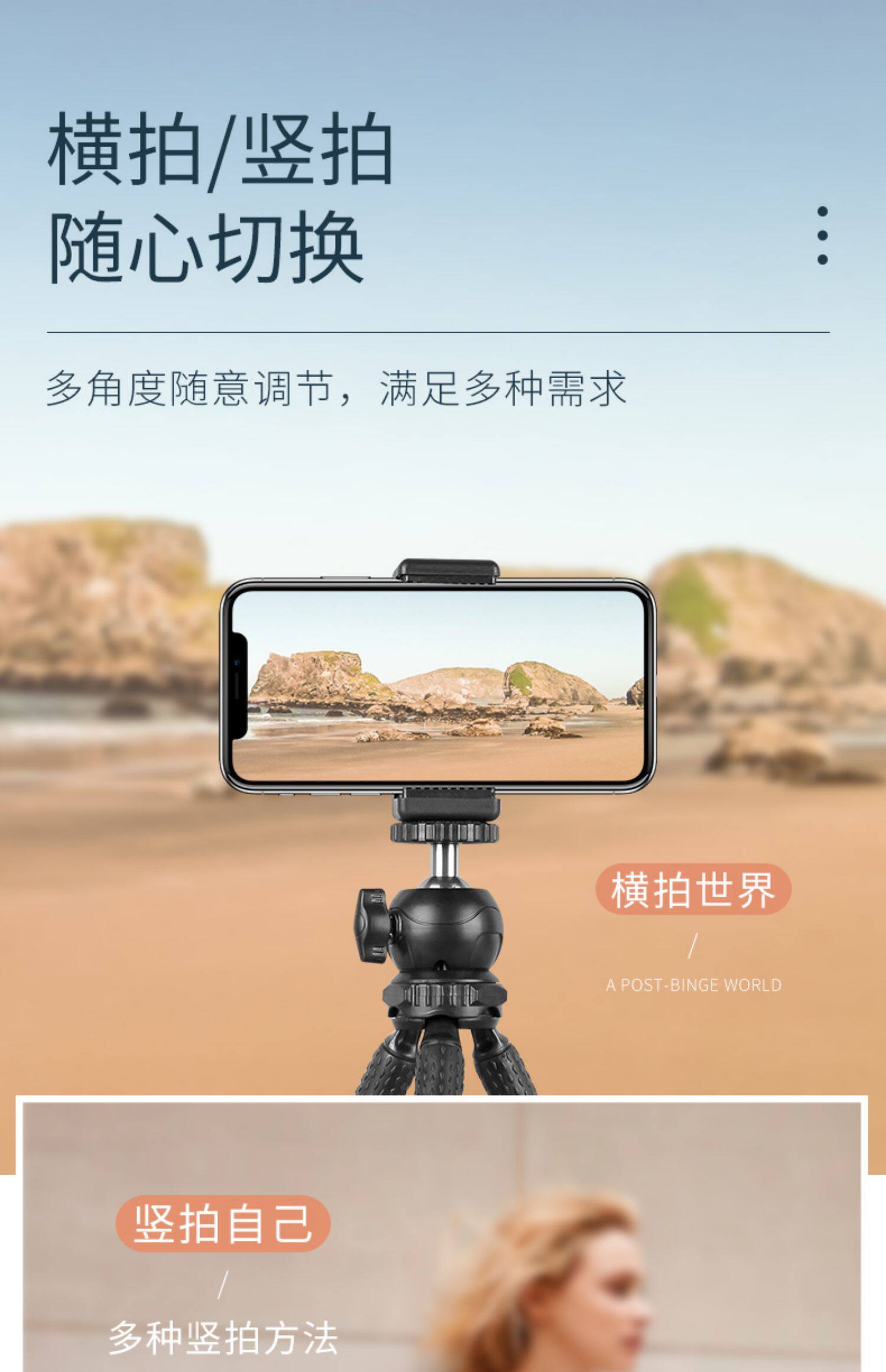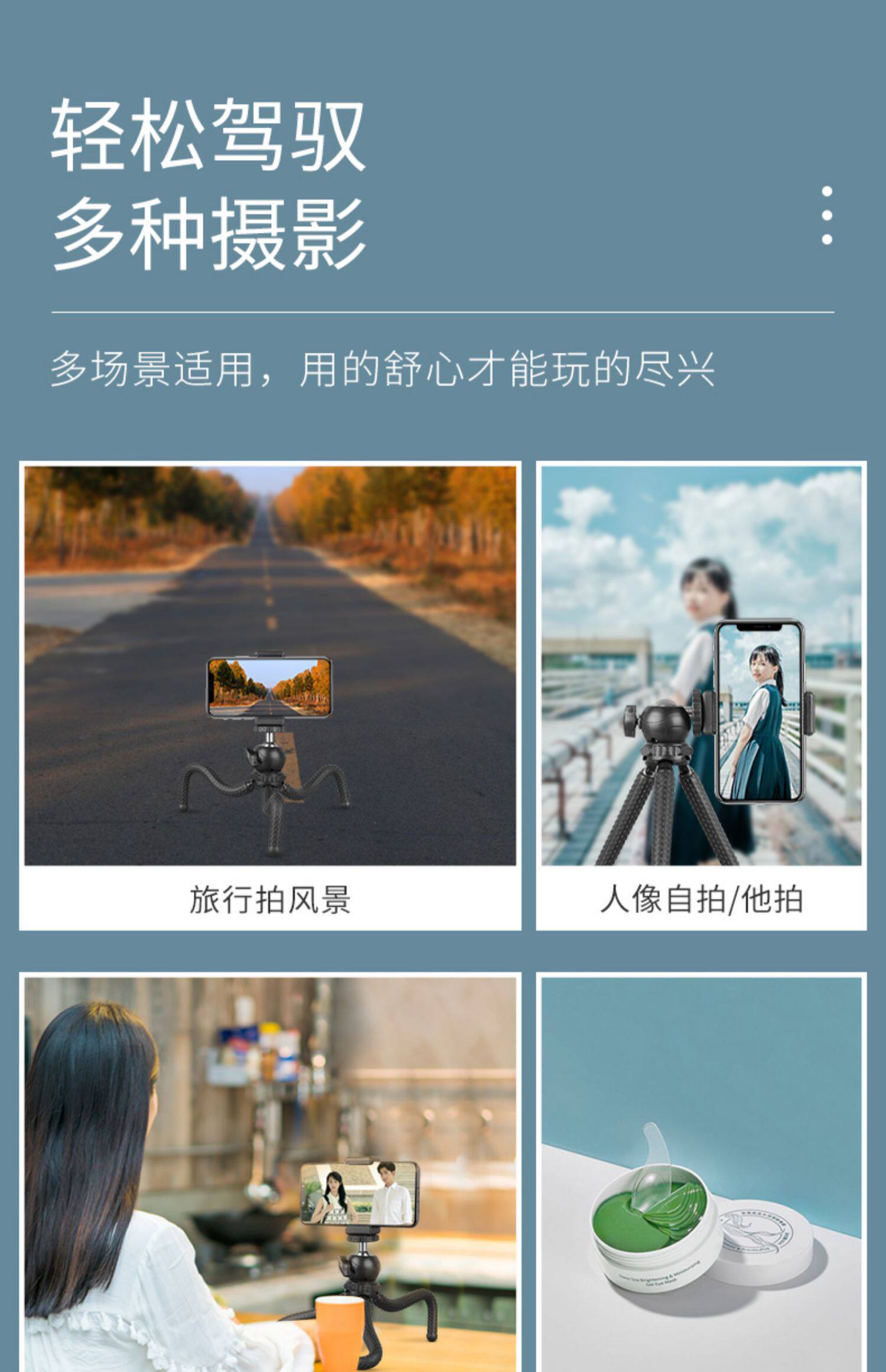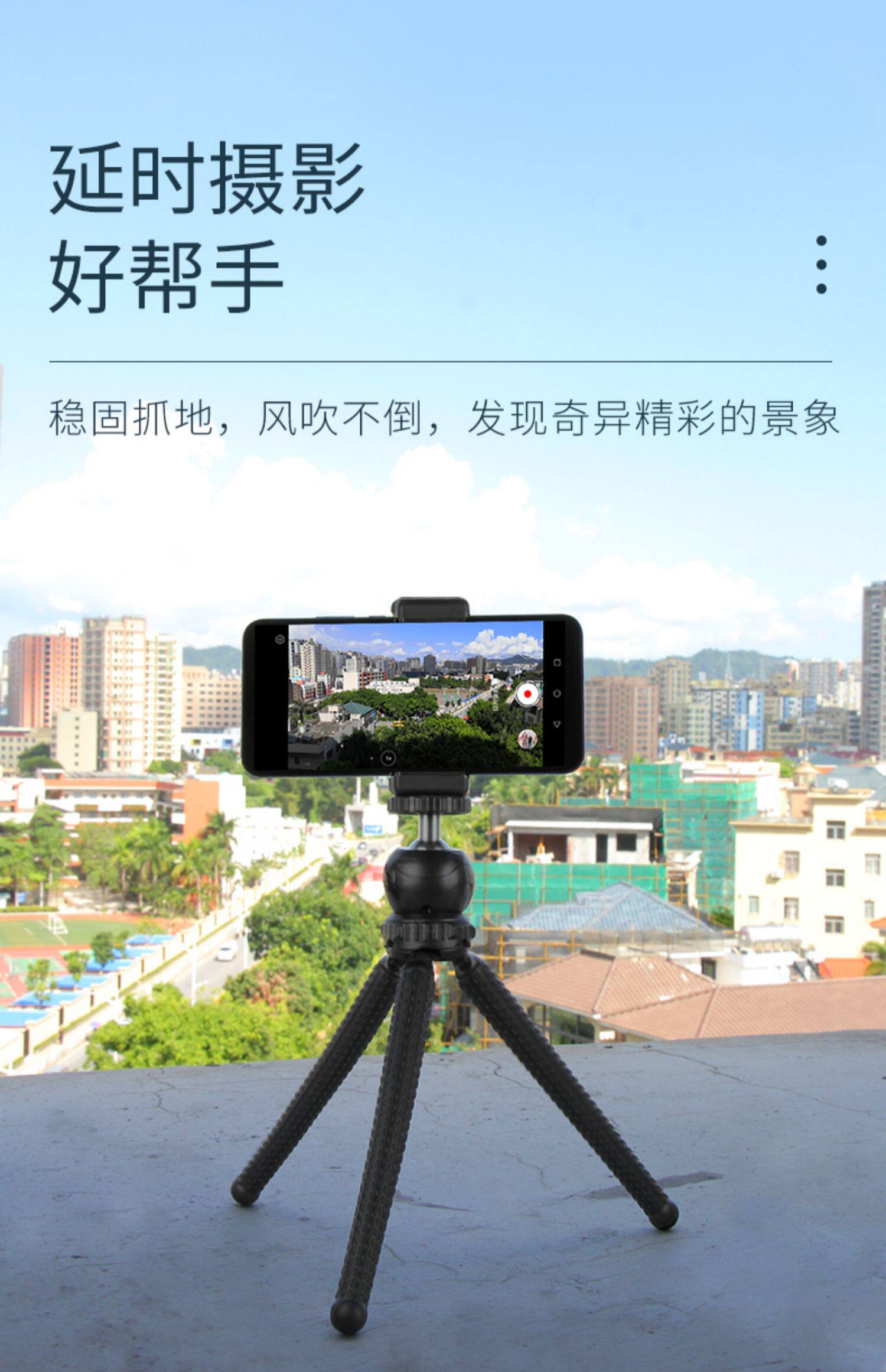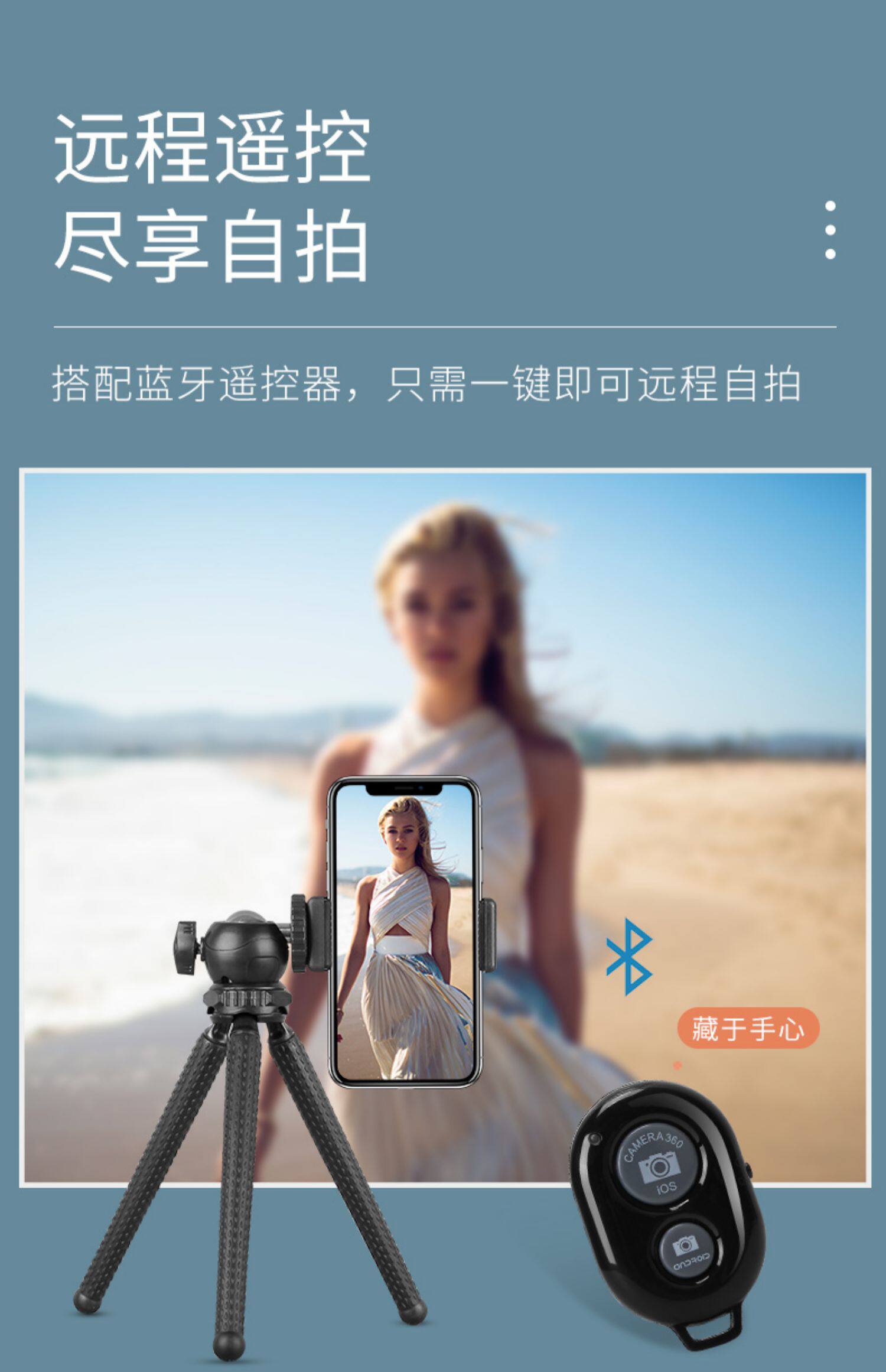 - 【30Q】 Синий штатив+Клип мобильного телефона+шарик -обработанный кардинг+Selfier