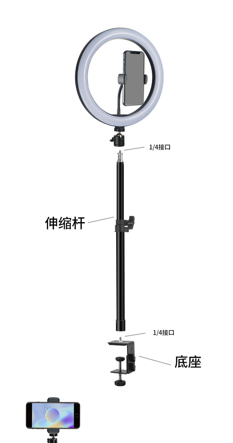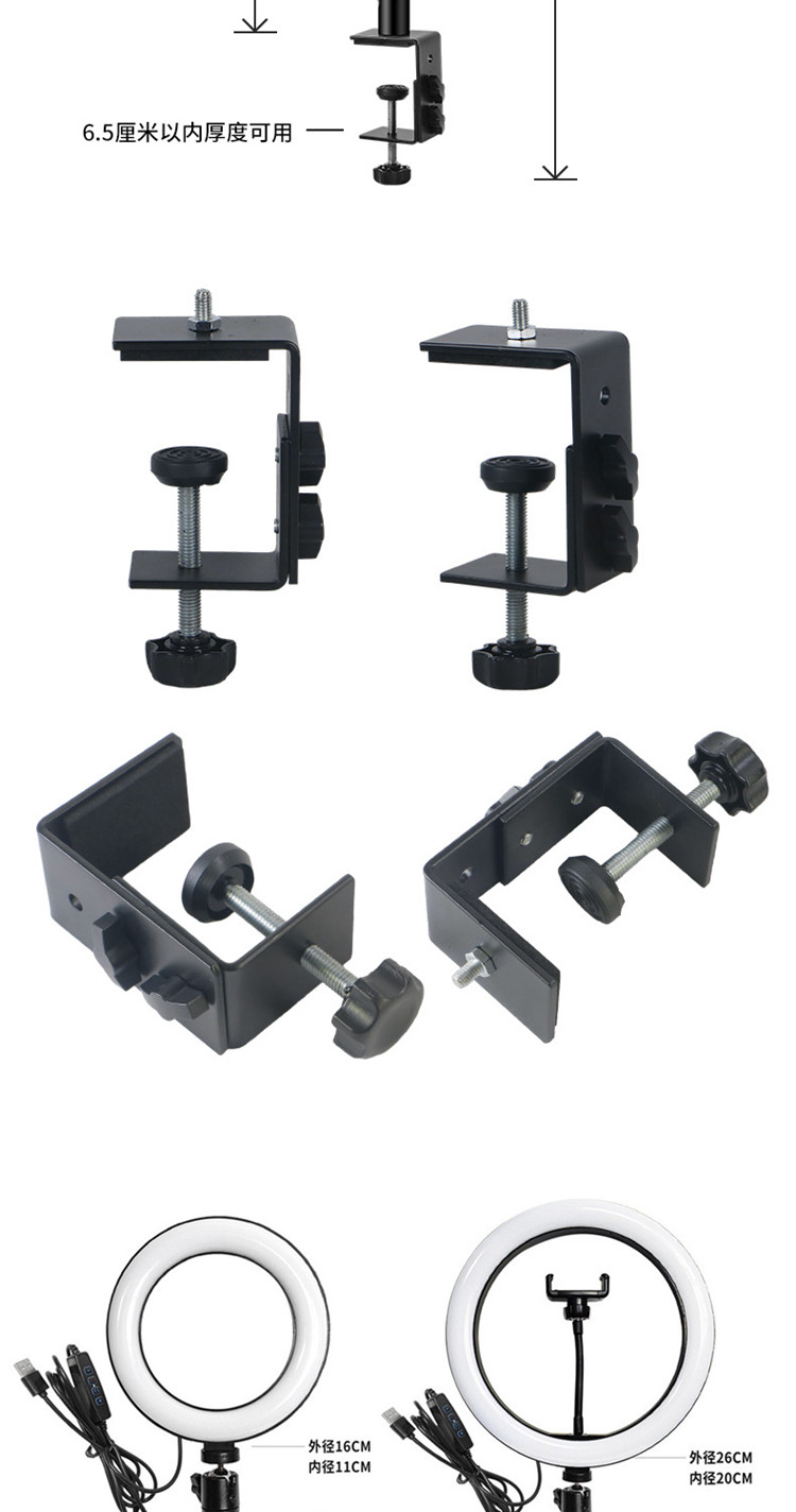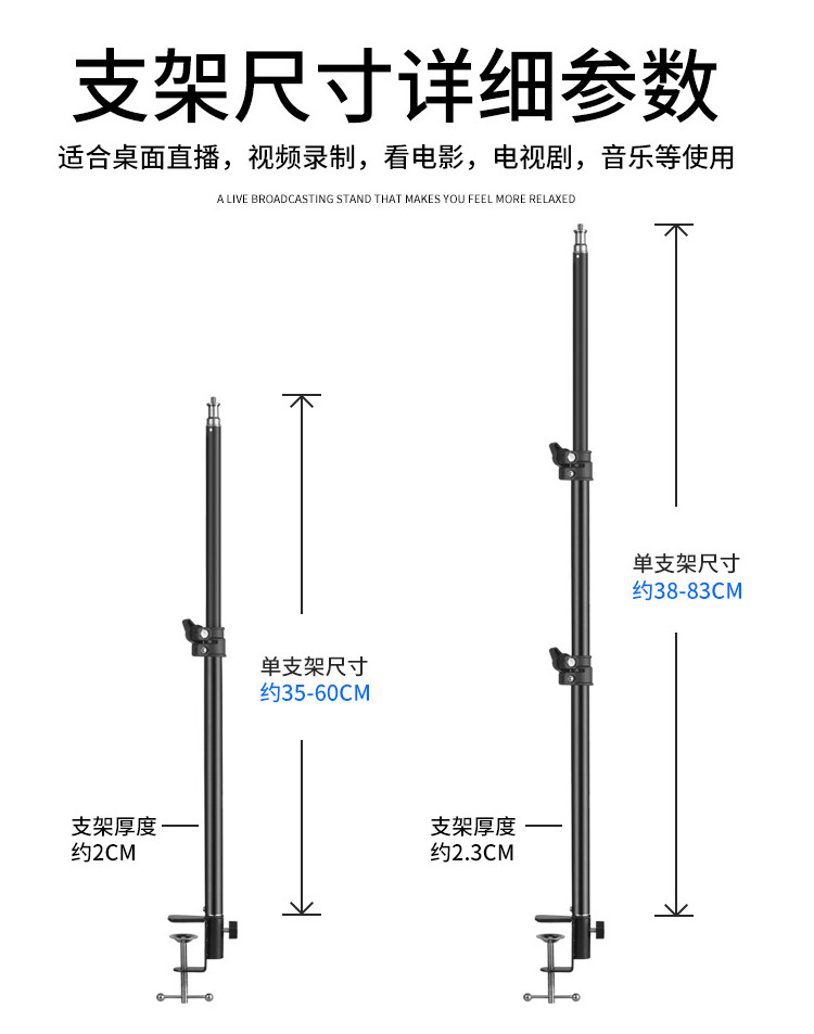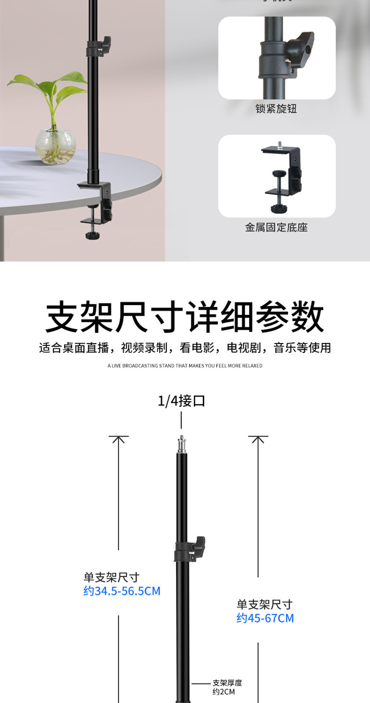 - Большой зажим, трехпозиционный телескопический кронштейн 26 см, заполняющий свет, черный